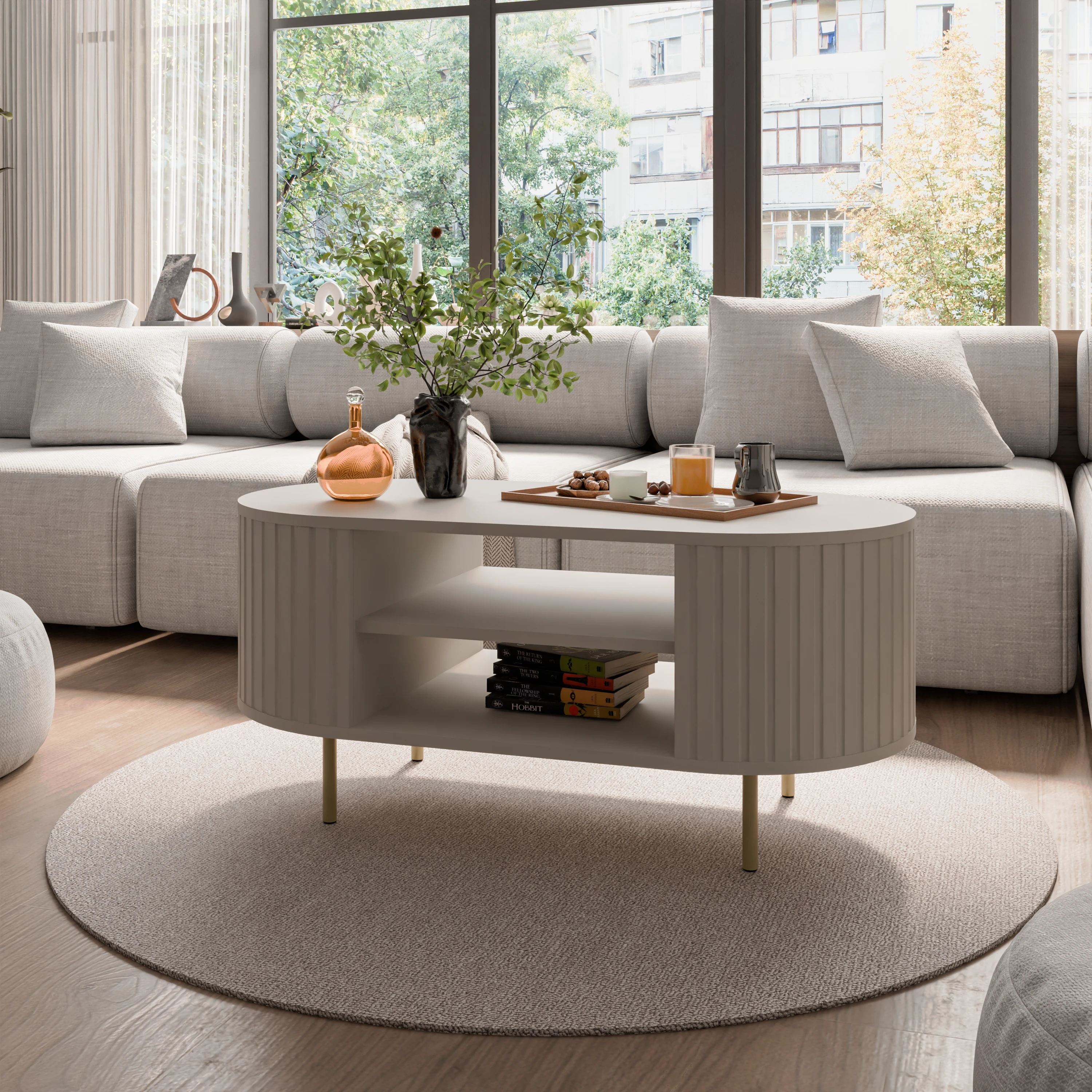 STOLIK KAWOWY OVELLA - 100 x 45 x 52 cm BEŻ PIASKOWY