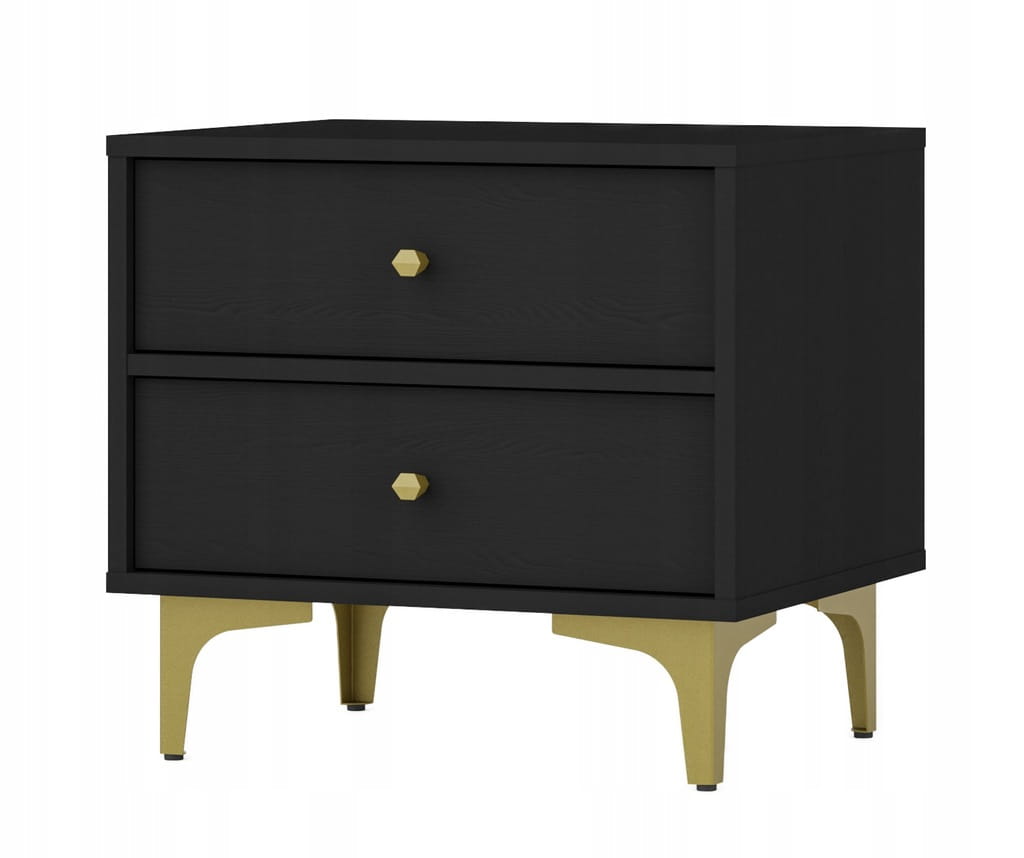 Stolik nocny SYDNEY 1, Szafka nocna 2 szuflady, czarny grafit - złoty