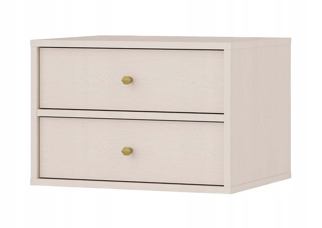 Stolik nocny SYDNEY 4, Szafka nocna 2 szuflady, beż piaskowy - złoty