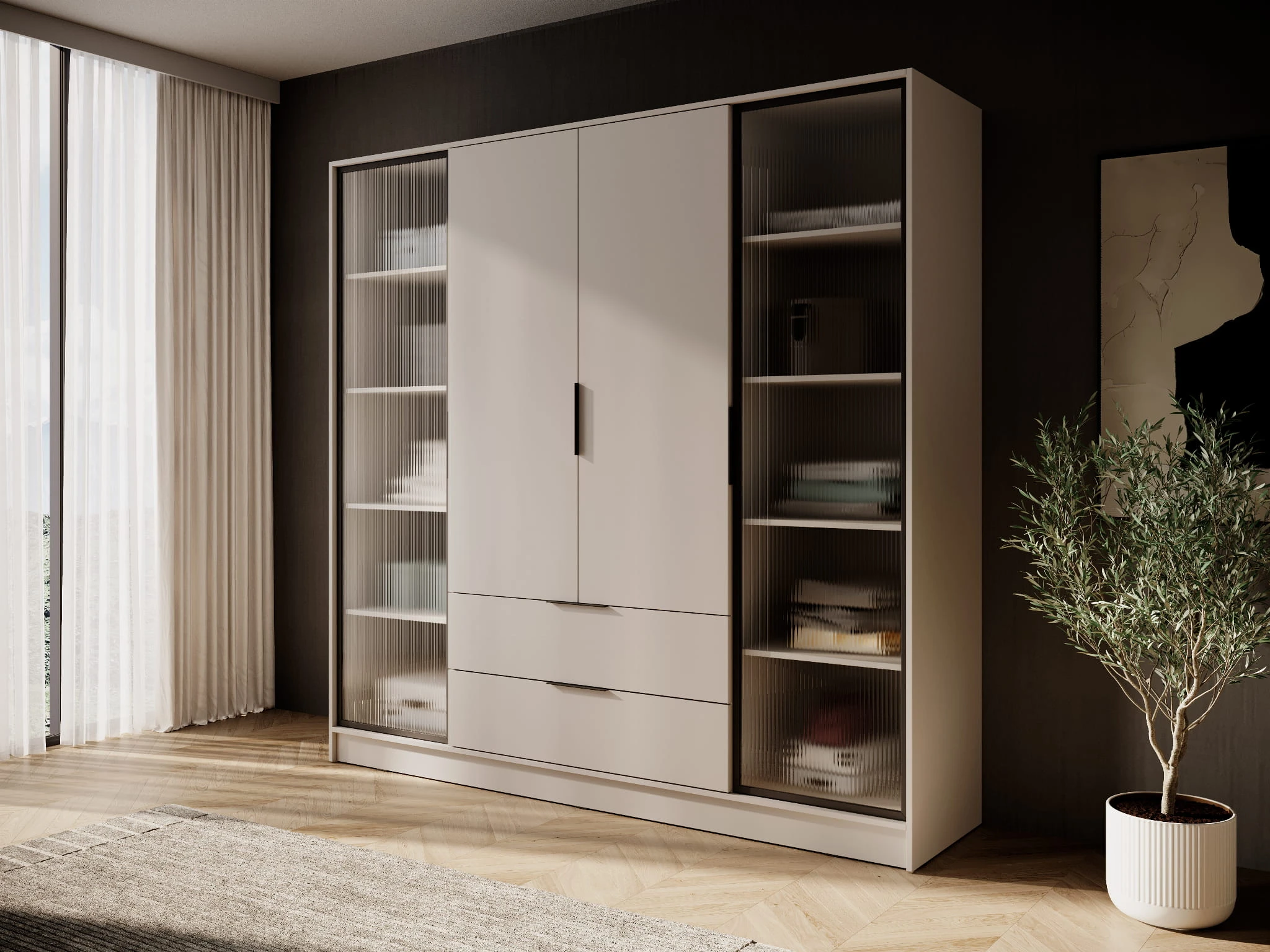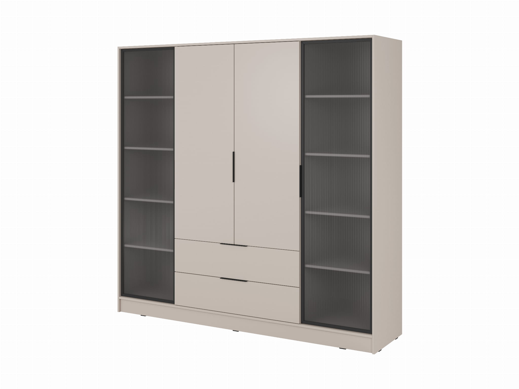 Szafa czterodrzwiowa, fronty witryny i szuflady FREZJA 206 cm KASZMIR