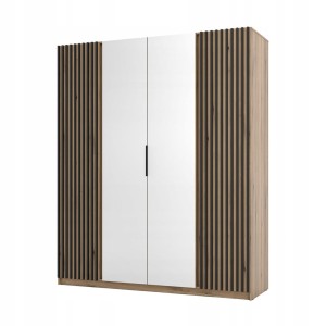 Szafa Czterodrzwiowa IGA 200 cm lustrzane fronty, dąb evoke + czarne lamele