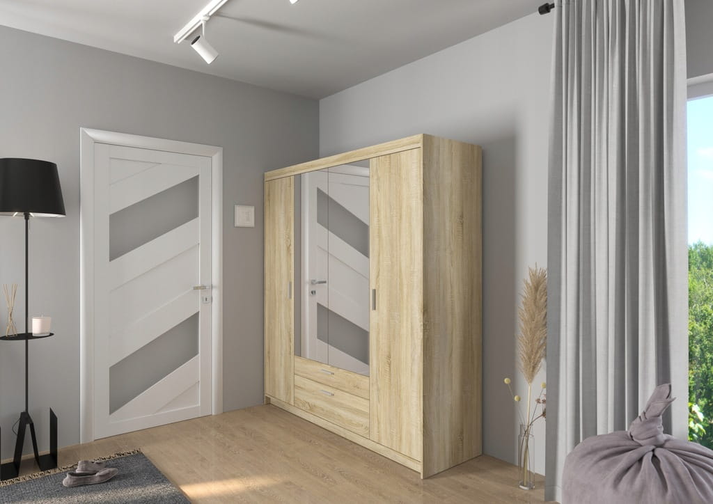 Szafa CZTERODRZWIOWA KLEO z lustrem, GARDEROBA DĄB SONOMA