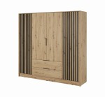Szafa czterodrzwiowa uchylna MALWA 206 cm z szufladami DĄB ARTISAN / lamela CZARNA