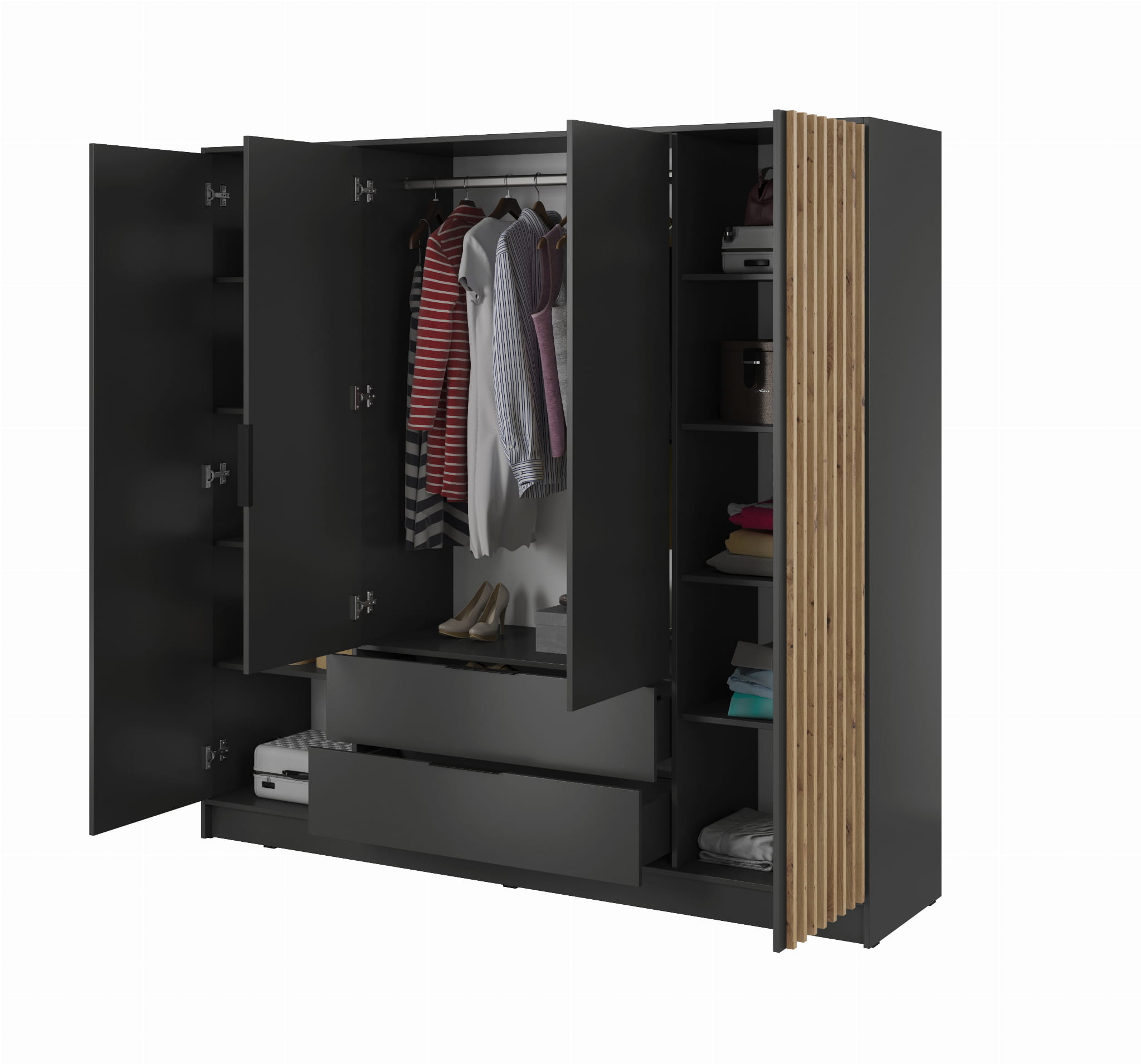 Szafa czterodrzwiowa uchylna MALWA 206 cm z szufladami GRAFIT/ lamela DĄB ARTISAN