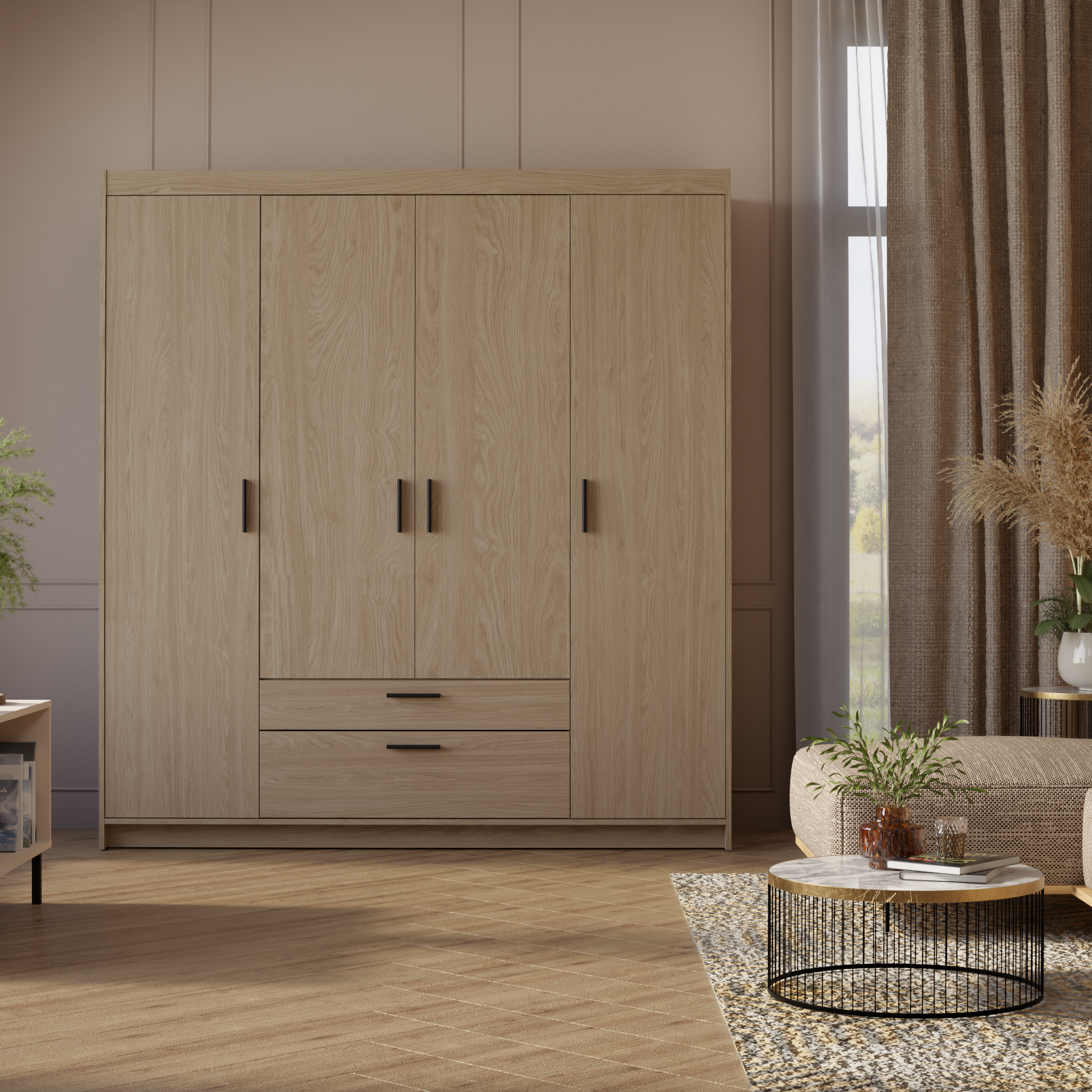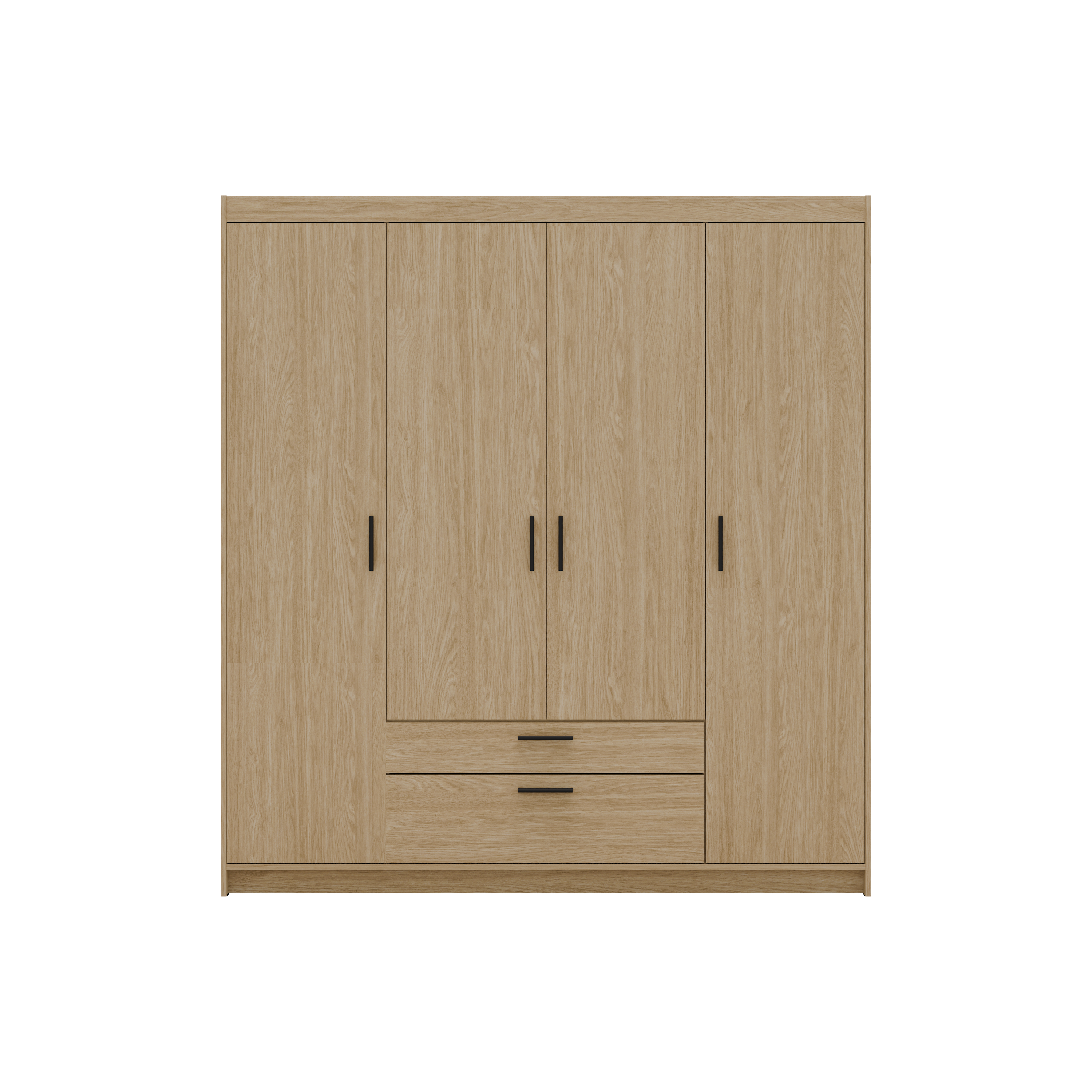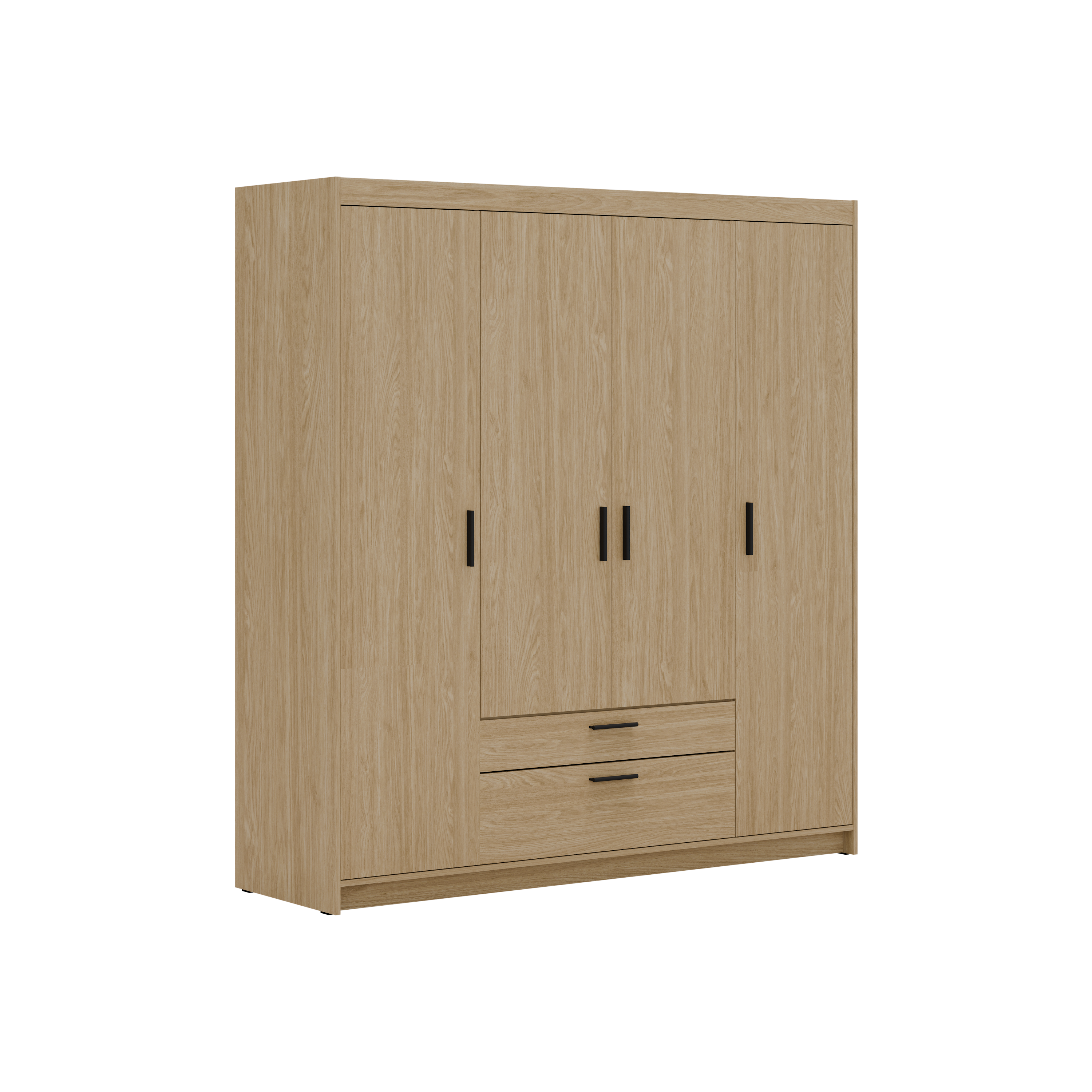 Szafa Czterodrzwiowa z dwiema szufladami KLEO, garderoba uchylna 176 cm DĄB OLEJOWANY