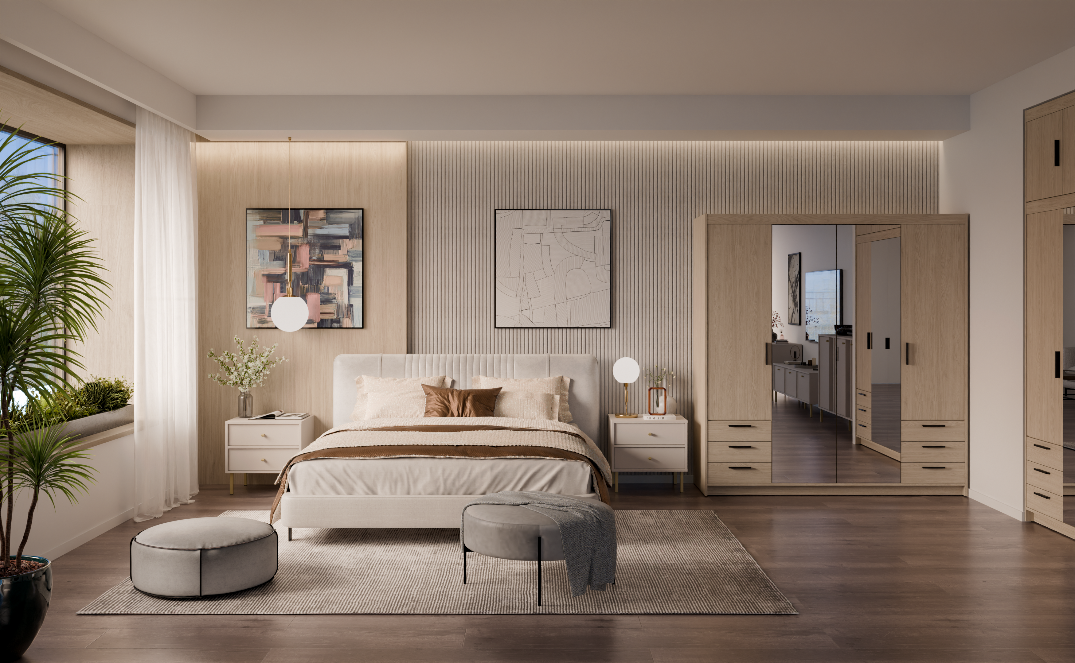 Oczywiście — takie właśnie są szafy z kolekcji KLEO. Zaprojektowana z myślą o nowoczesnych wnętrzach i realnych potrzebach użytkowników, oferuje szeroki wybór wariantów: od kompaktowej szafy jednodrzwiowej, przez modele dwu-, trzy- i czterodrzwiowe, aż po funkcjonalną szafę narożną. Dostępność wersji z lustrem lub bez pozwala jeszcze lepiej dopasować mebel do charakteru pomieszczenia. Kolekcja występuje w starannie dobranej palecie kolorów — bieli, beżu piaskowego, dębie lefkas, dębie olejowanym oraz dębie sonoma — dzięki czemu z łatwością wpisuje się zarówno w jasne, minimalistyczne aranżacje, jak i bardziej przytulne, naturalne przestrzenie.