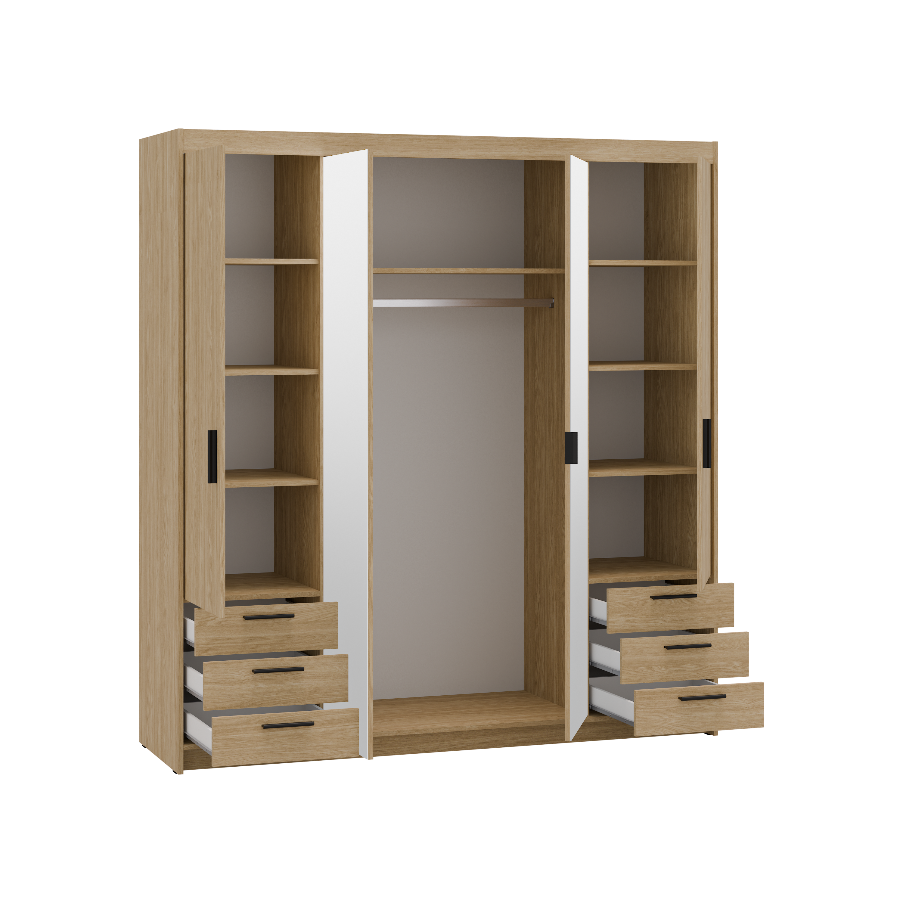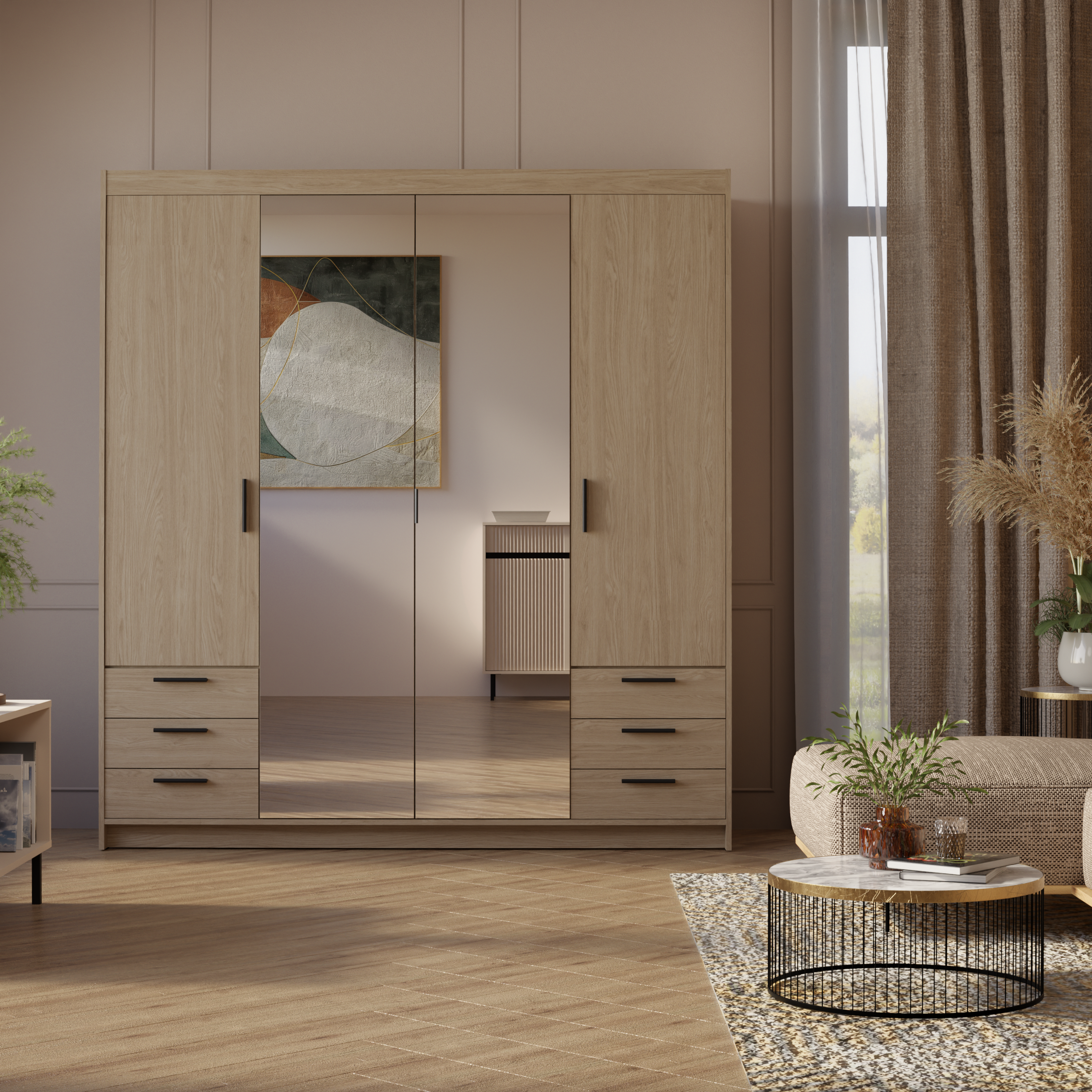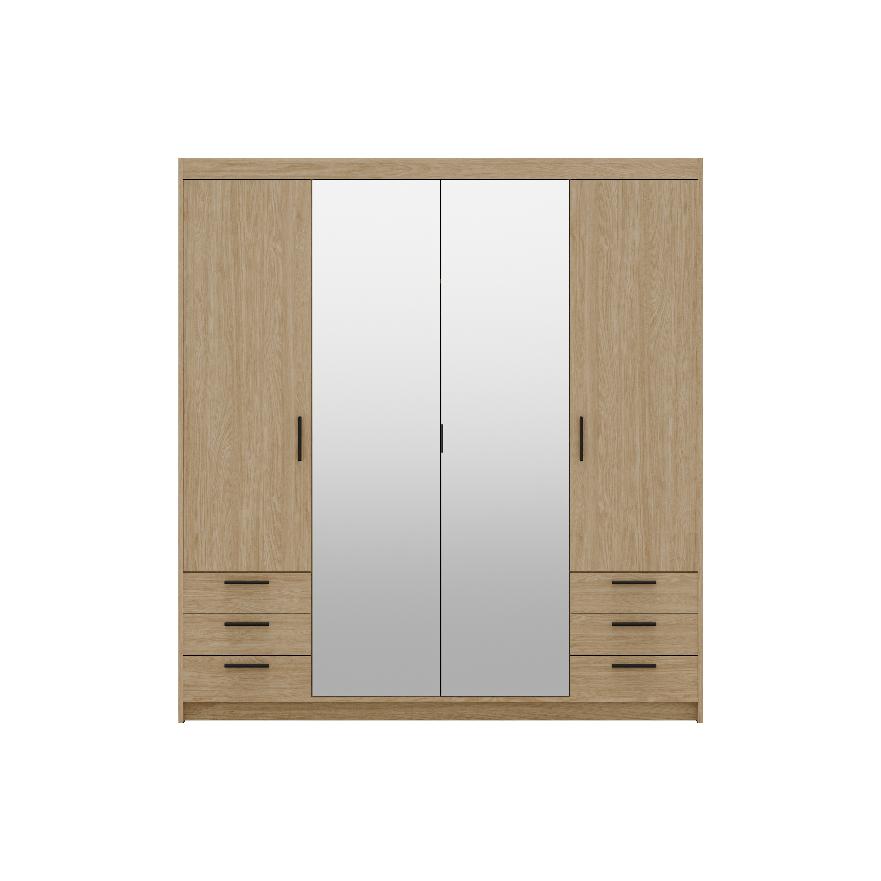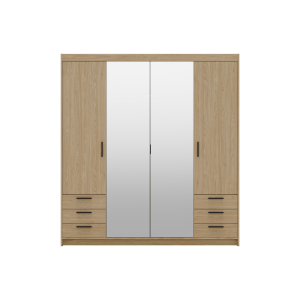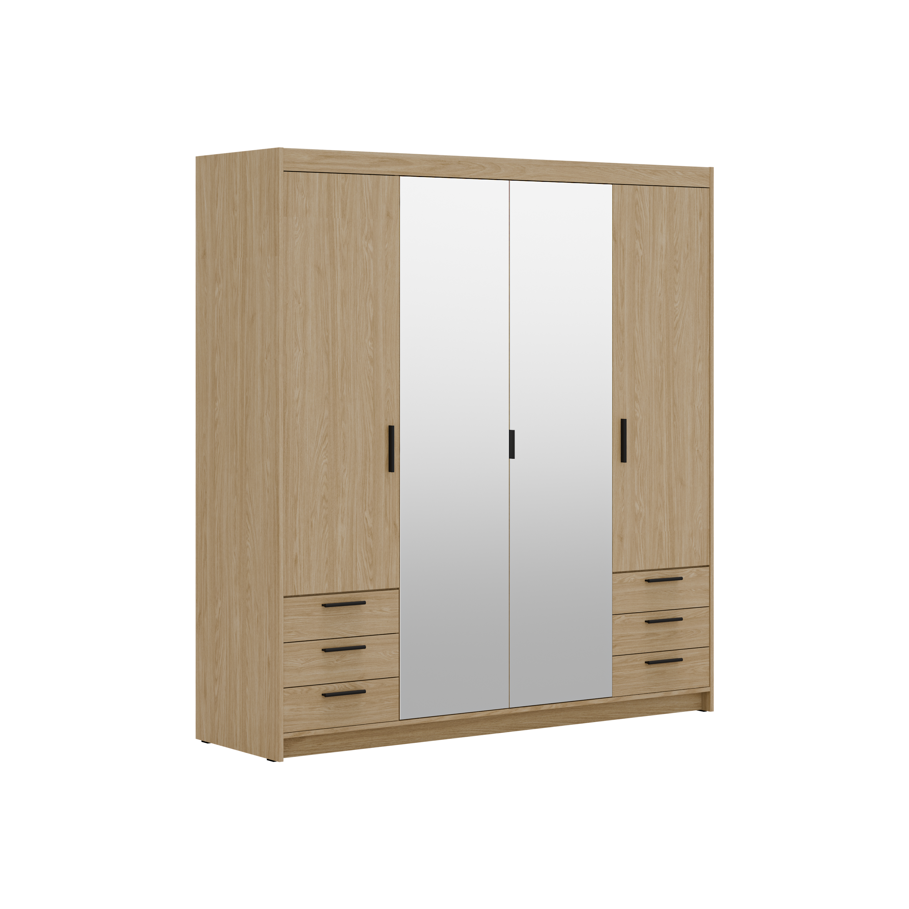 Szafa Czterodrzwiowa z lustrem KLEO, garderoba z sześcioma szufladami 176 cm DAB OLEJOWANY