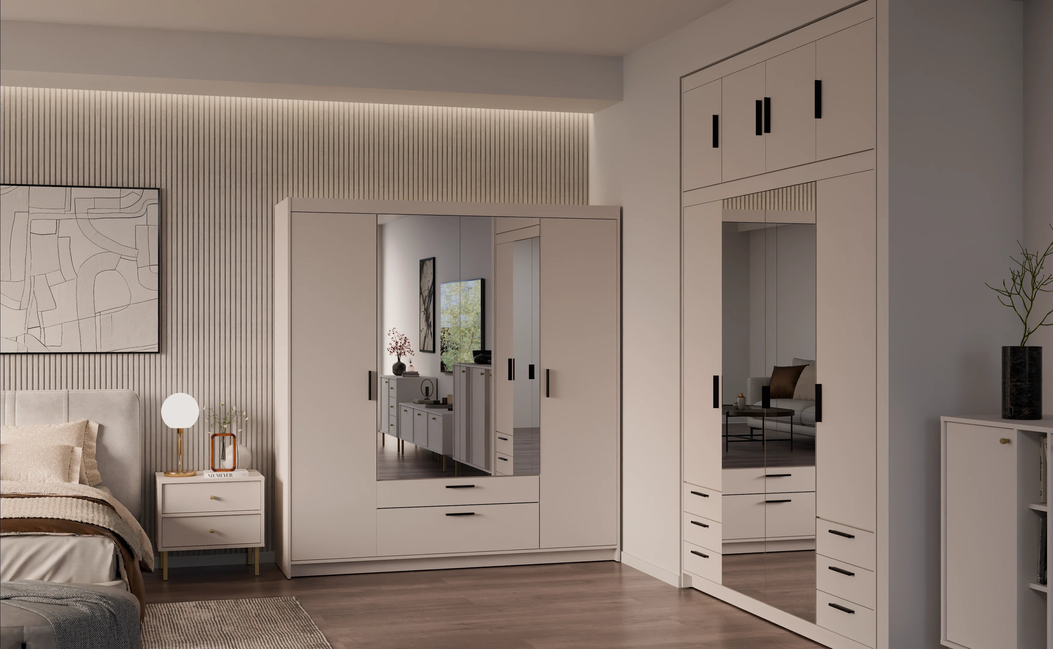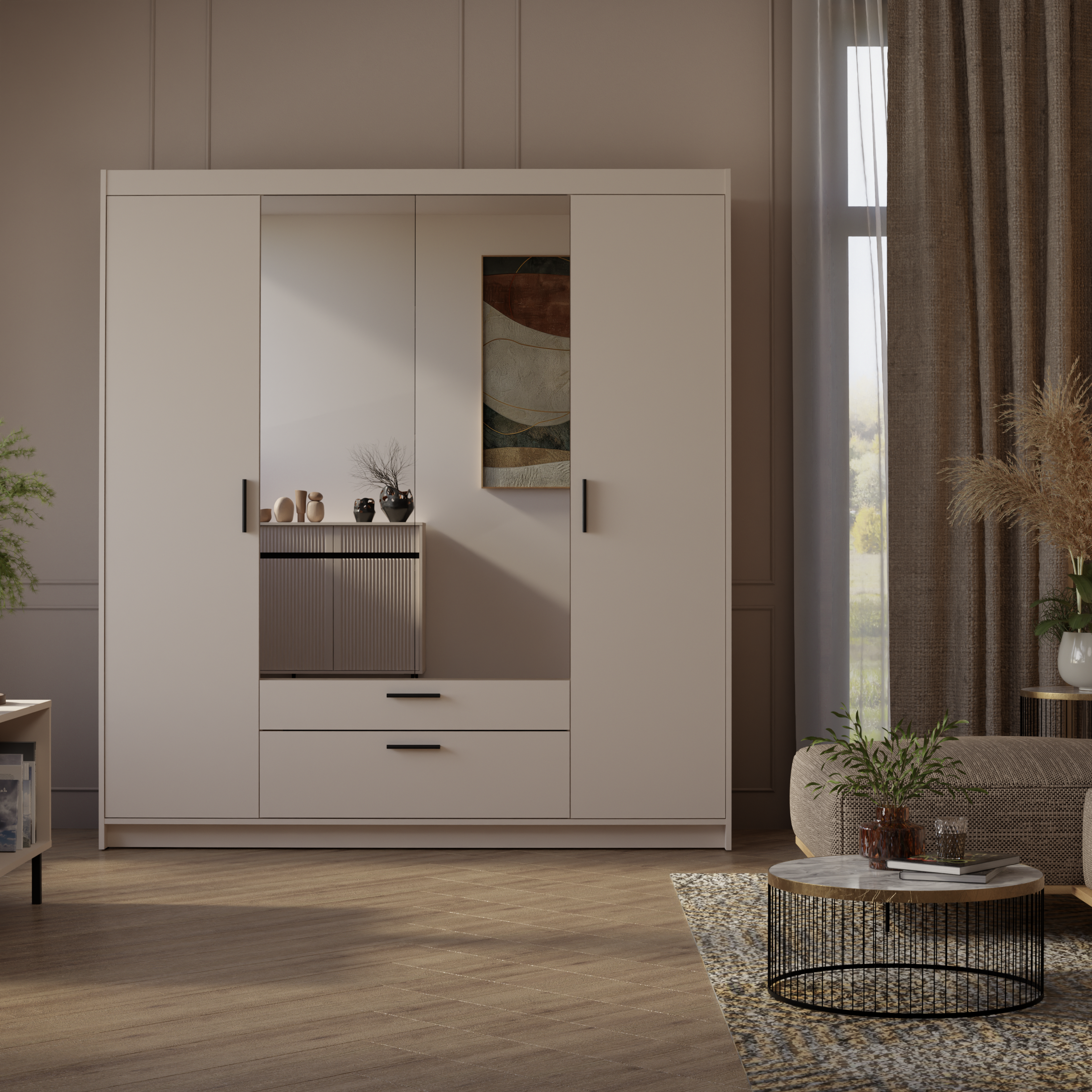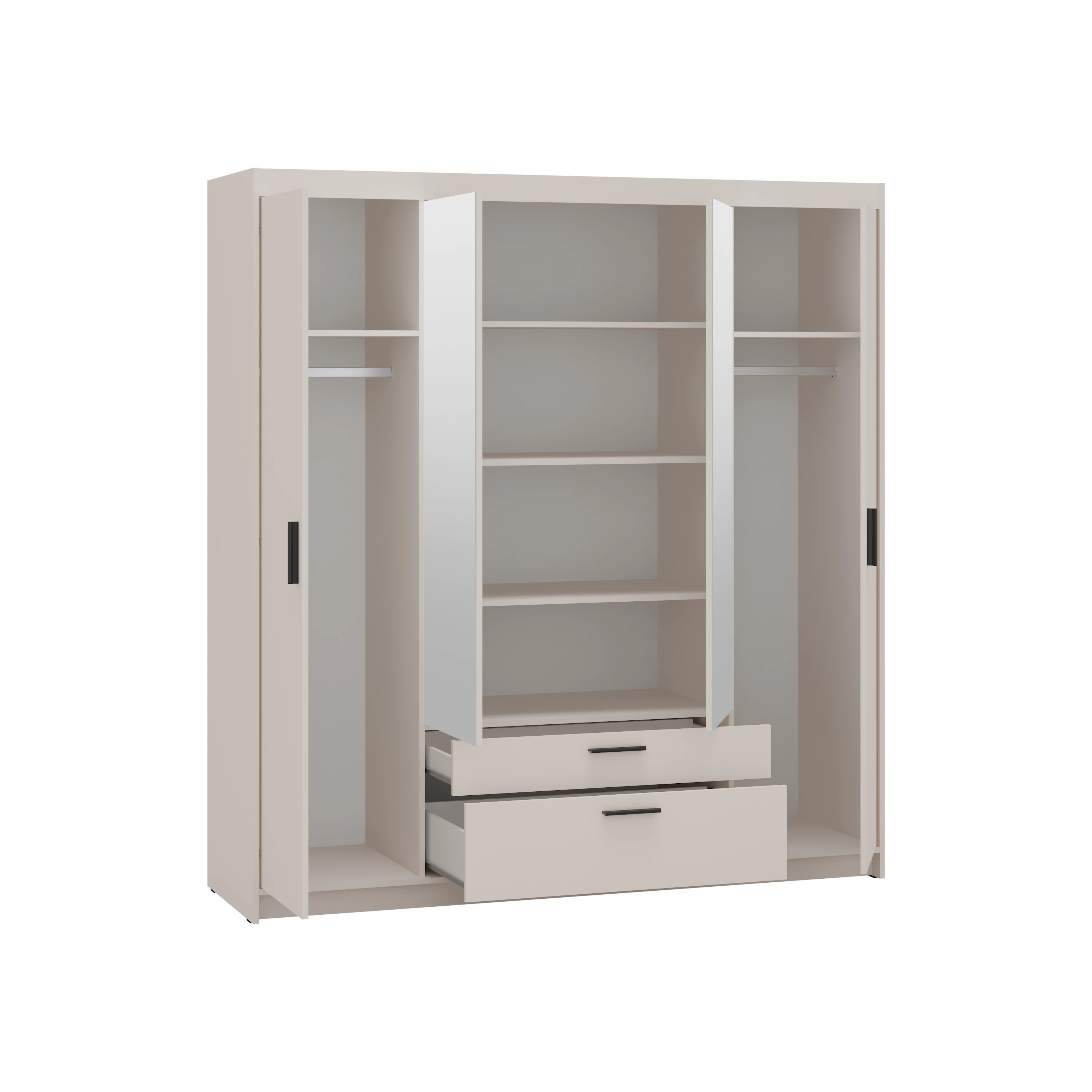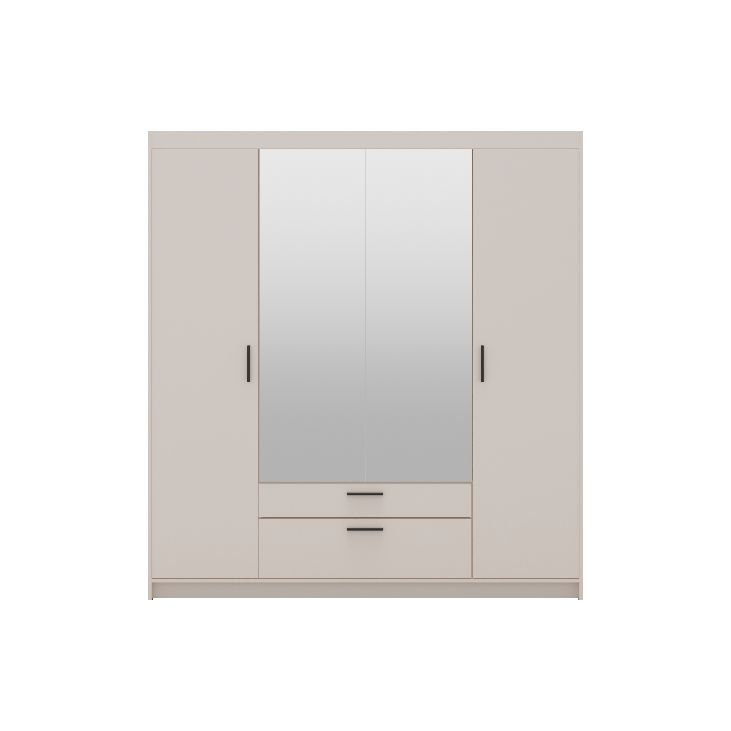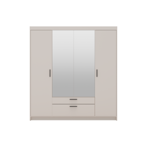 Szafa Czterodrzwiowa z szufladami i lustrem KLEO, garderoba 176 cm BEŻ PIASKOWY