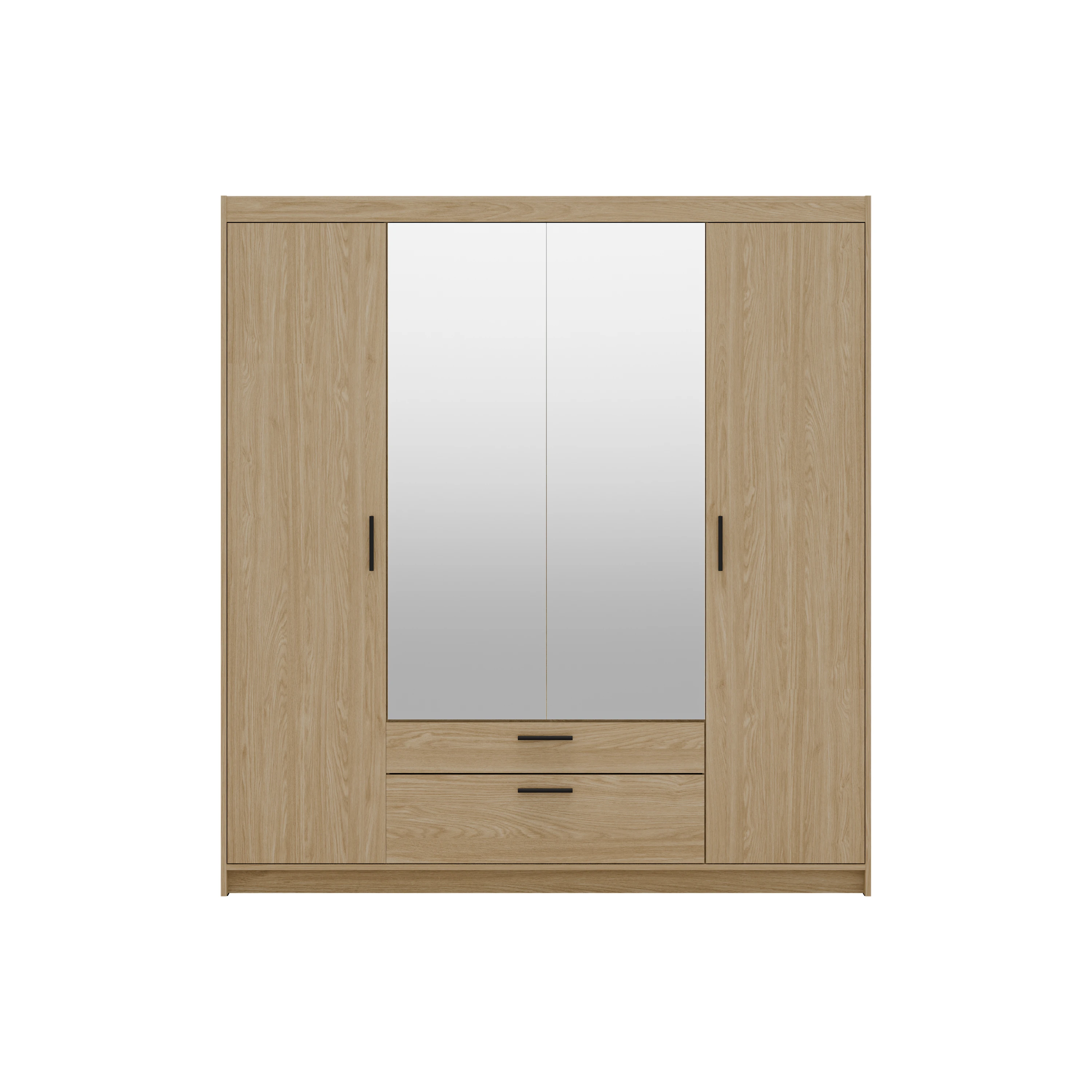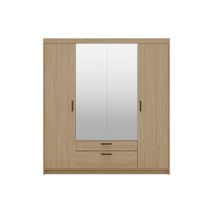 Szafa Czterodrzwiowa z szufladami i lustrem KLEO, garderoba 176 cm DĄB OLEJOWANY