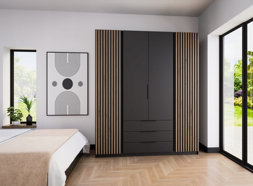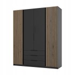 Szafa Czterodrzwiowa z szufladami IGA 200 cm, czarny / dąb evoke lamele