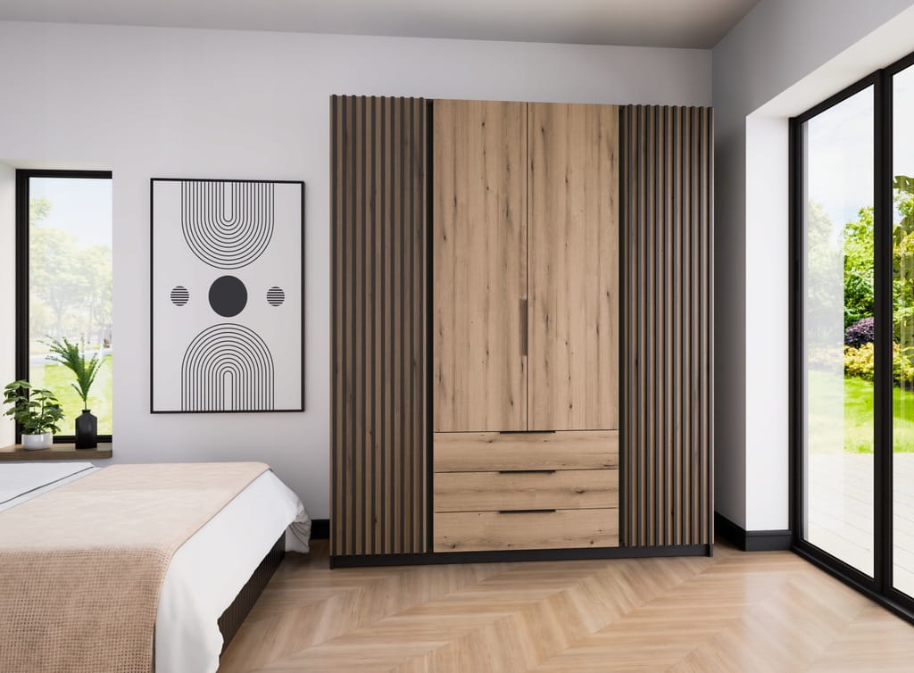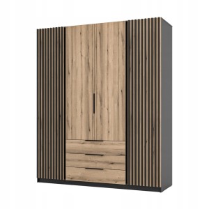 Szafa Czterodrzwiowa z szufladami IGA 200 cm, dąb evoke / czarny lamele