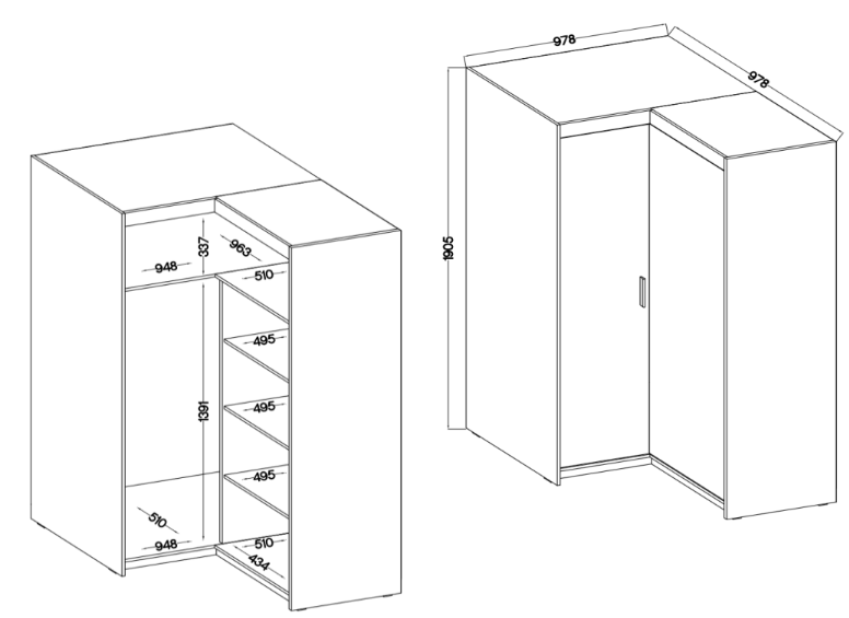 - Rodzaj: dwudrzwiowa narożna