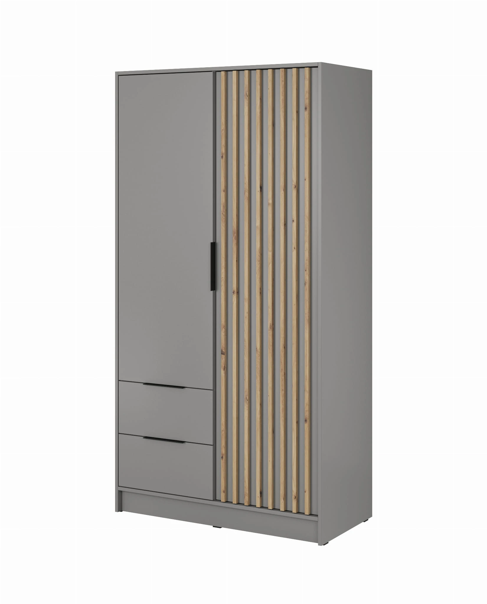 Szafa dwudrzwiowa uchylna MALWA 105 cm z szufladami SZARY / lamela DĄB ARTISAN