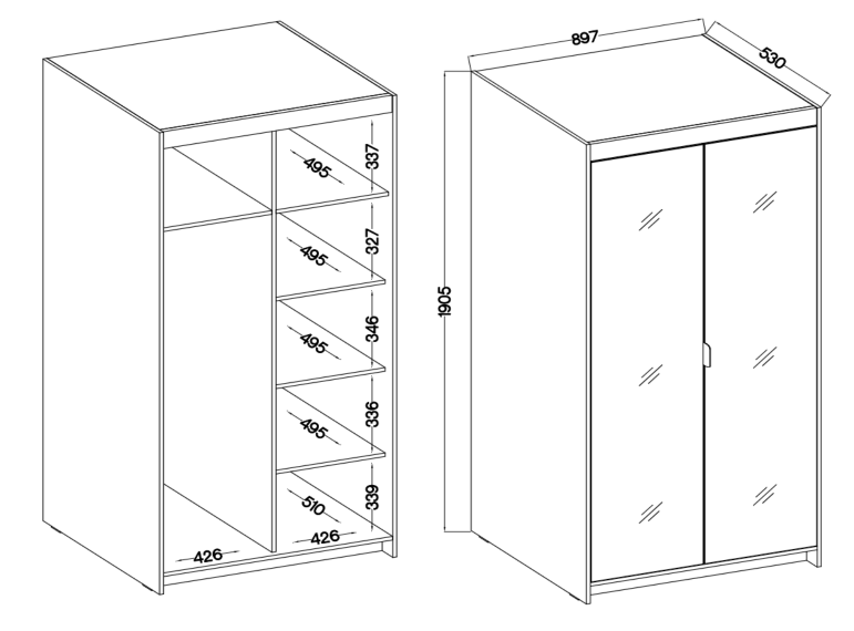 - Rodzaj: dwudrzwiowa uchylna