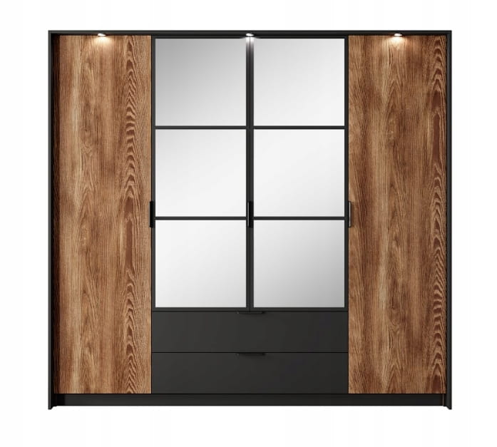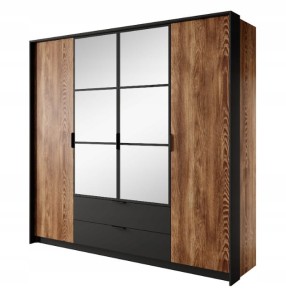 Szafa MERY 220 cm szuflady + lustra, meble do sypialni kasztan + antracyt