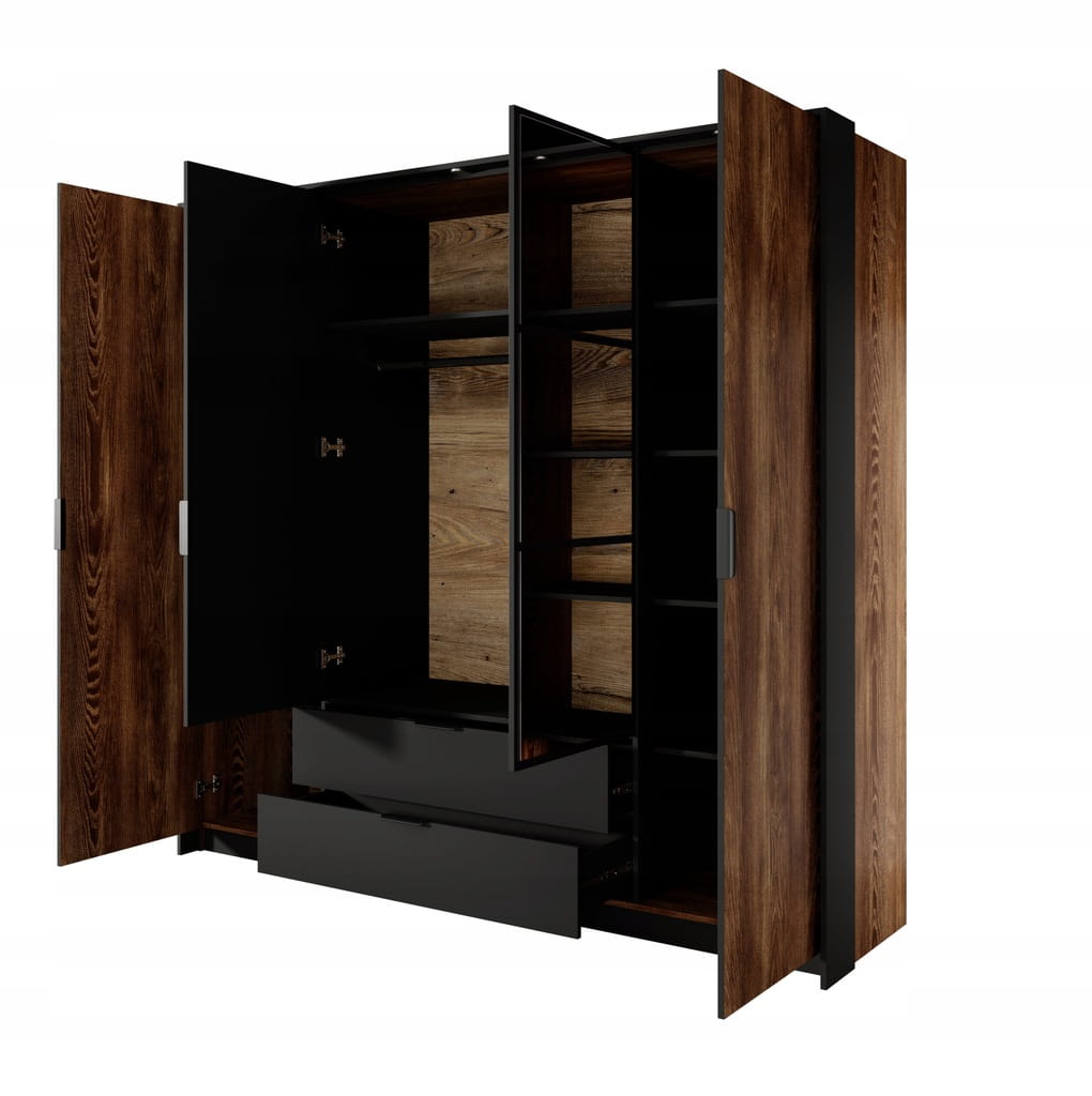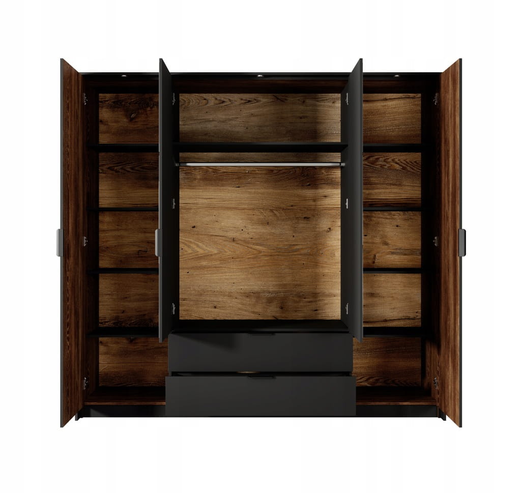 ✅ Praktyczność na Pierwszym Miejscu: Szafa idealnie sprawdzi się do sypialni jako twoja garderoba. Czterodrzwiowa szafa wyposażona w dwie szuflady, półki i drążek na wieszaki, pozwala na przechowywanie różnorodnych przedmiotów, od ubrań po drobiazgi. Dzięki nim utrzymasz porządek w swoim domu, a wszystko będzie zawsze uporządkowane.