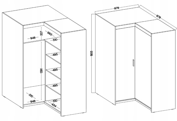 Szafa narożna KLEO Dwudrzwiowa Garderoba DĄB LEFKAS