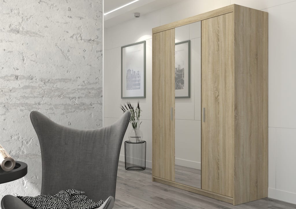Szafa TRZYDRZWIOWA KLEO z lustrem, GARDEROBA DĄB SONOMA