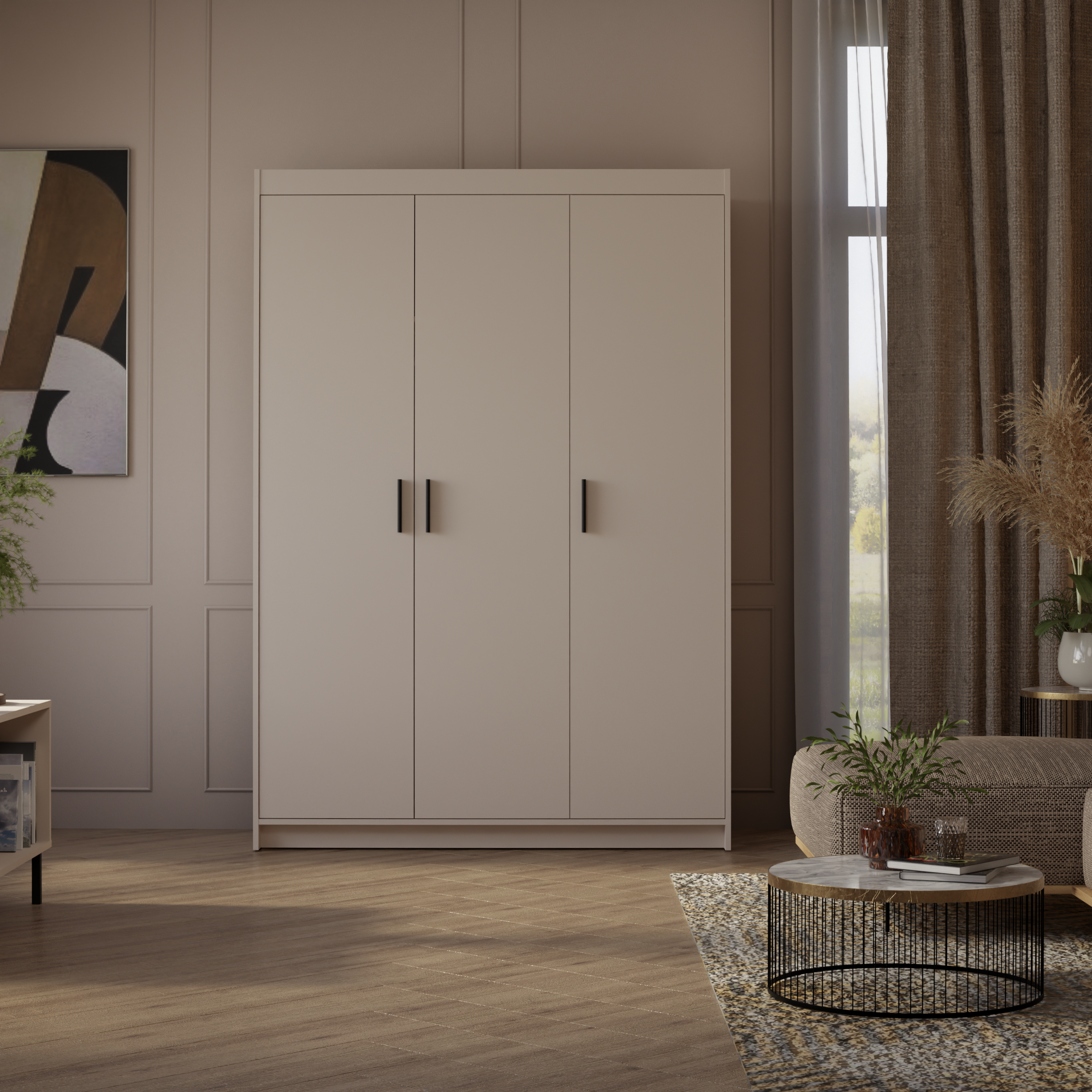 Szafa Trzydrzwiowa uchylna KLEO, garderoba 133 cm BEŻ PIASKOWY