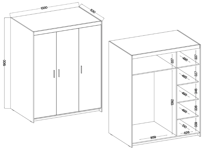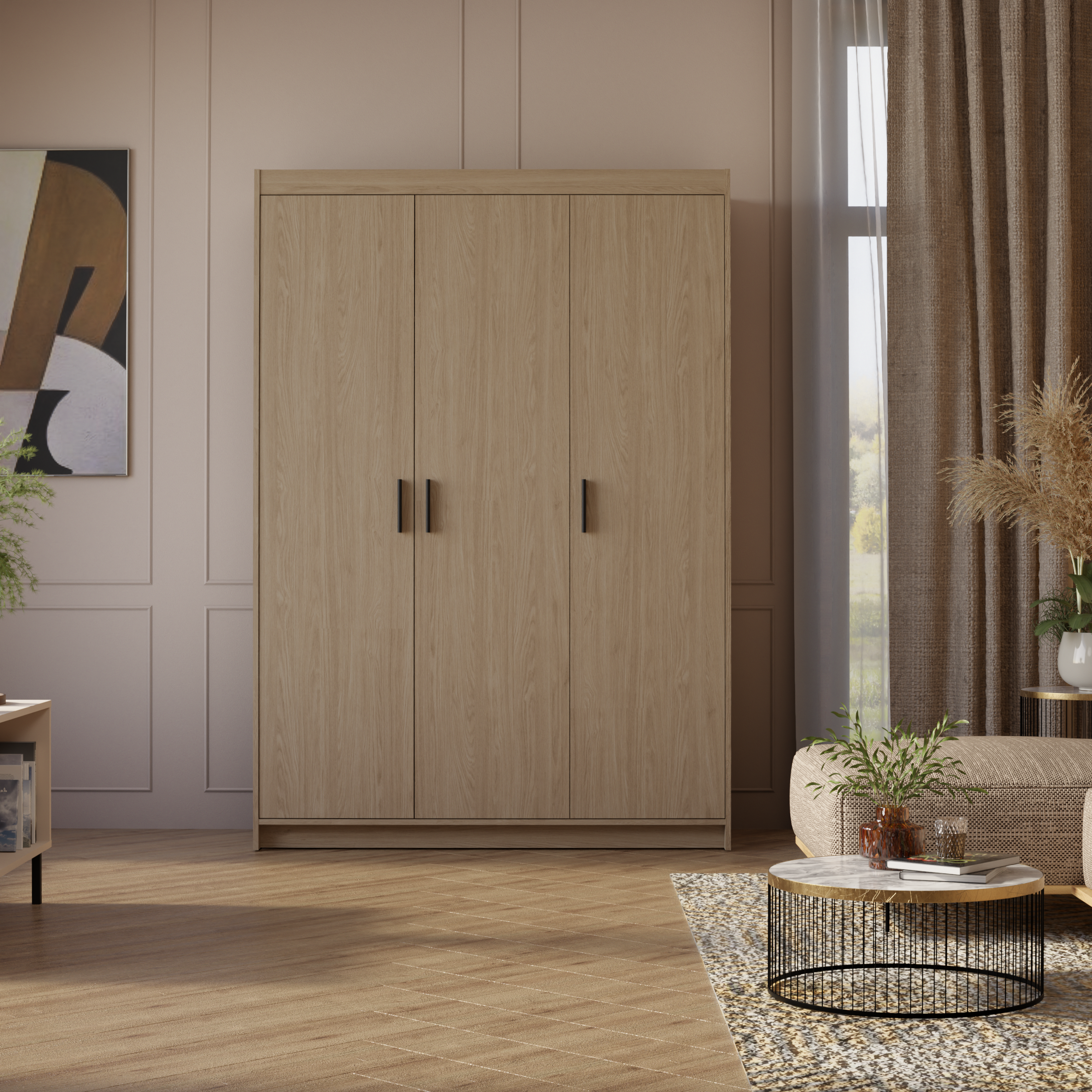 Szafa Trzydrzwiowa uchylna KLEO, garderoba 133 cm DĄB OLEJOWANY