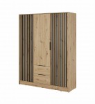 Szafa trzydrzwiowa uchylna MALWA 155 cm z szufladami DĄB ARTISAN / lamela CZARNA