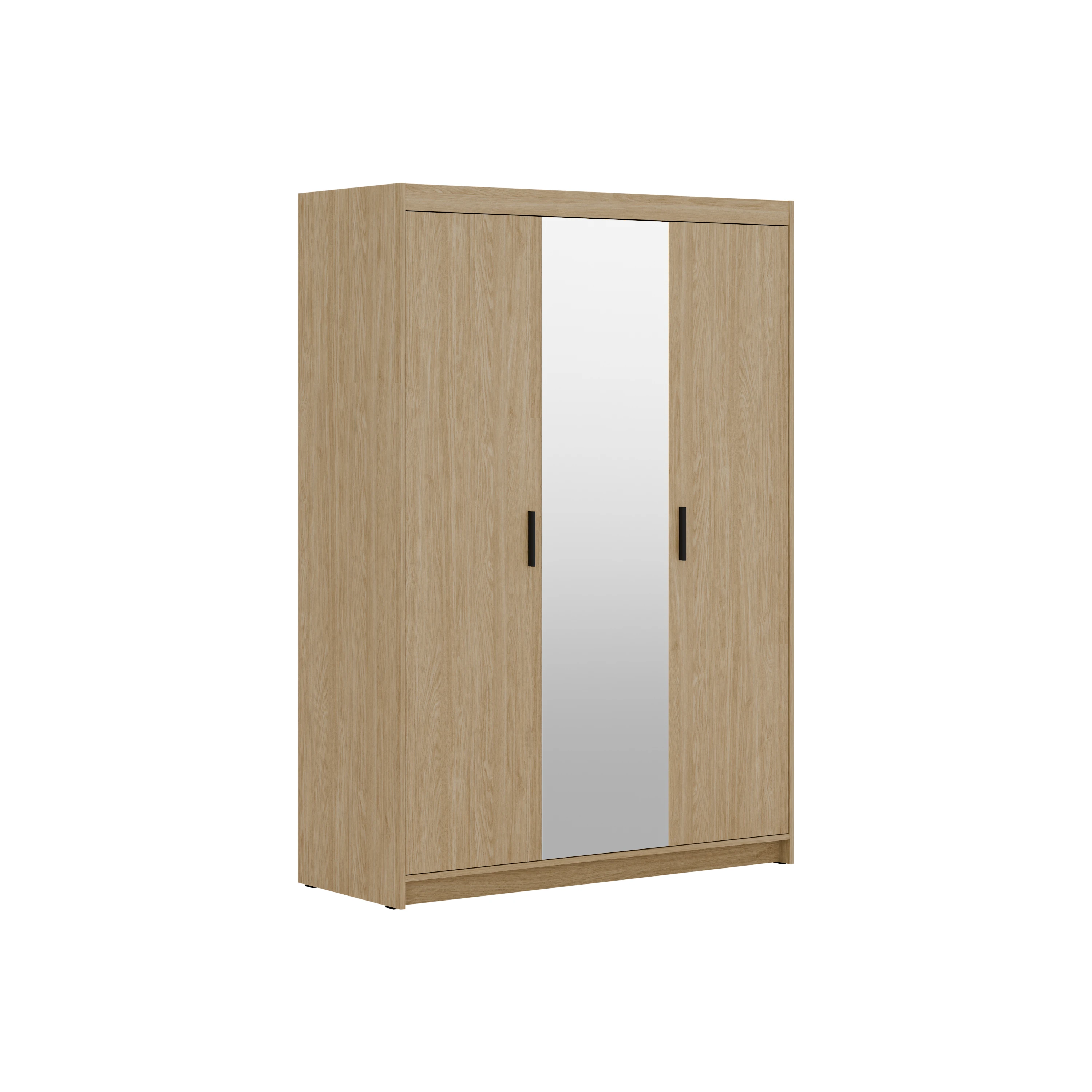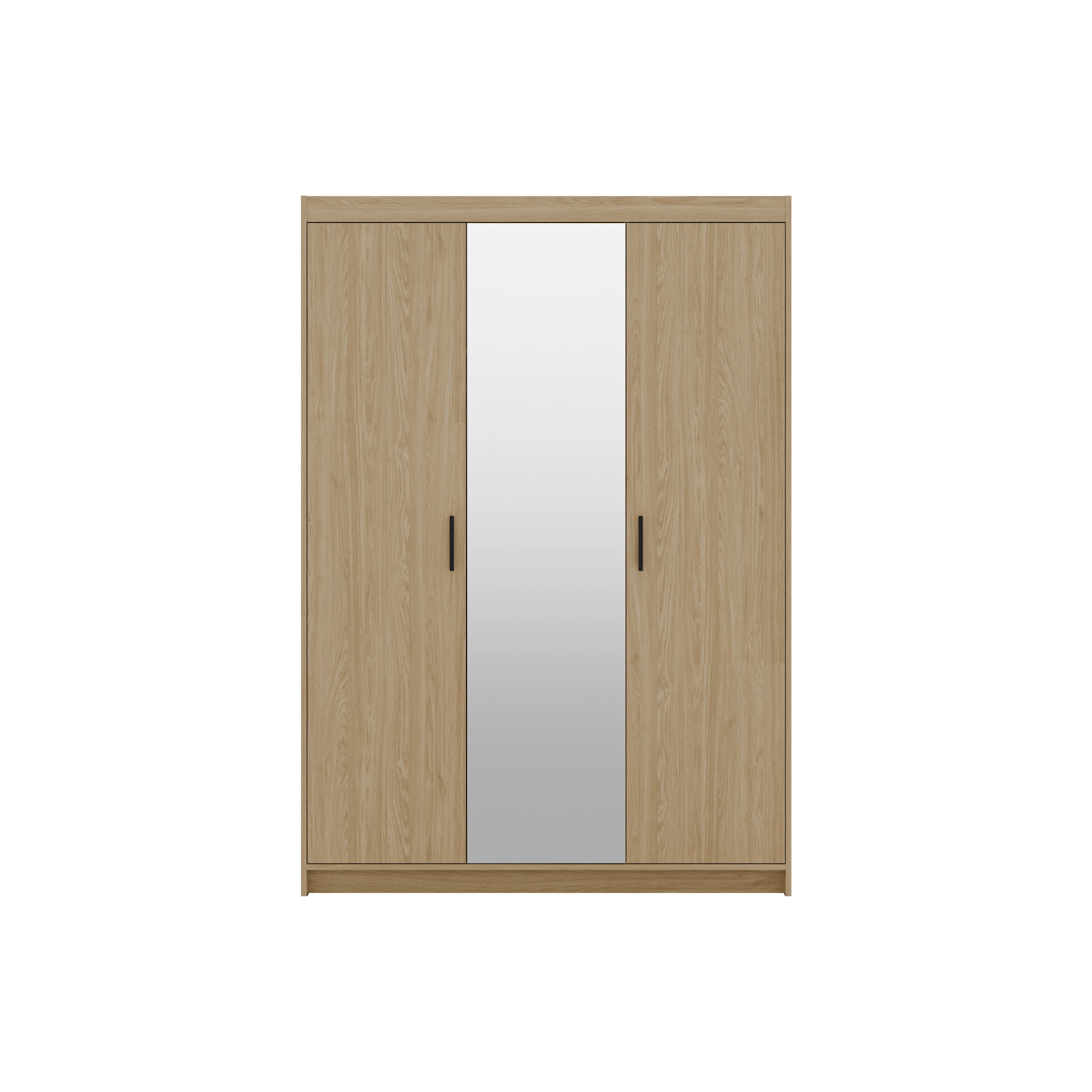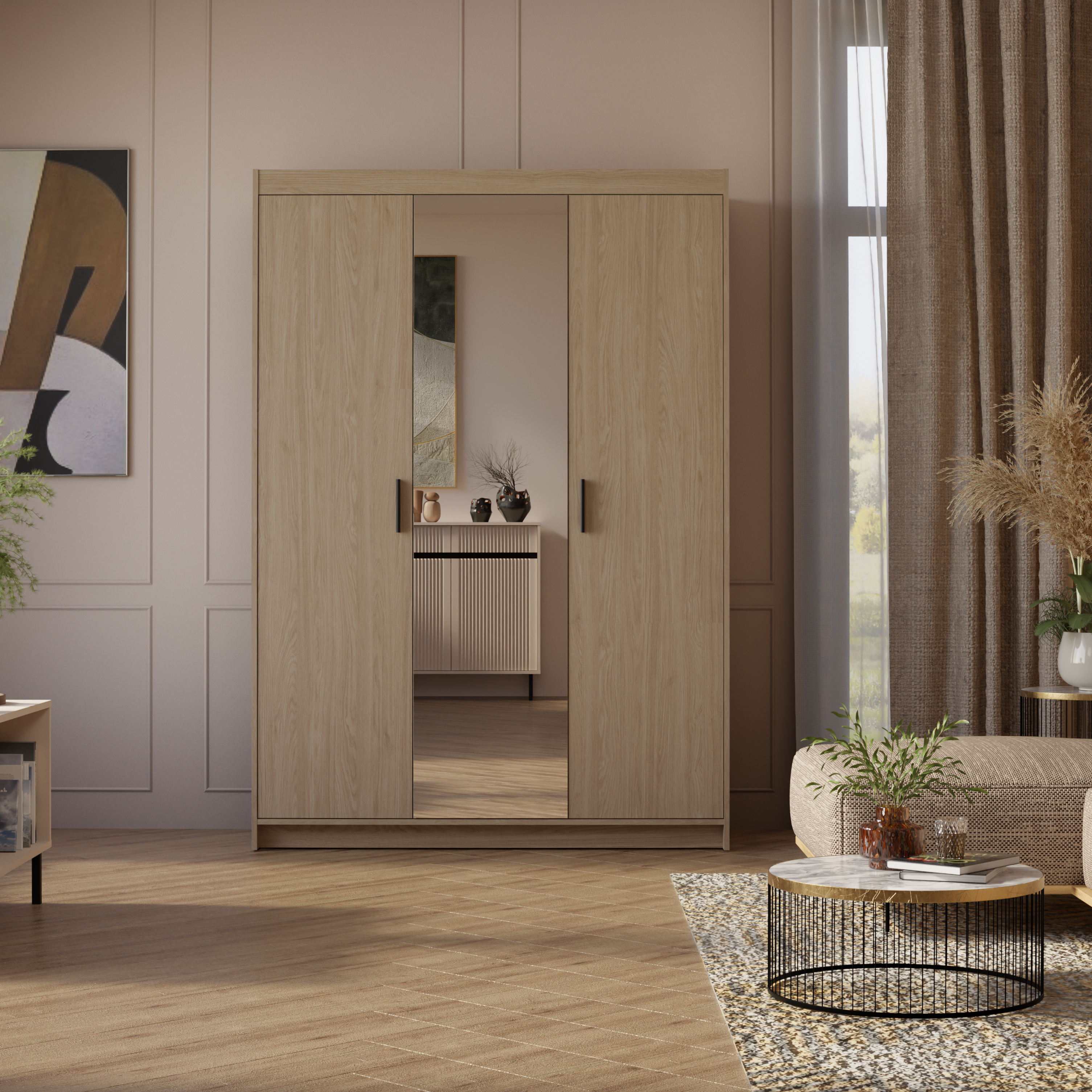 Szafa Trzydrzwiowa uchylna z lustrem KLEO, garderoba 133 cm DĄB OLEJOWANY
