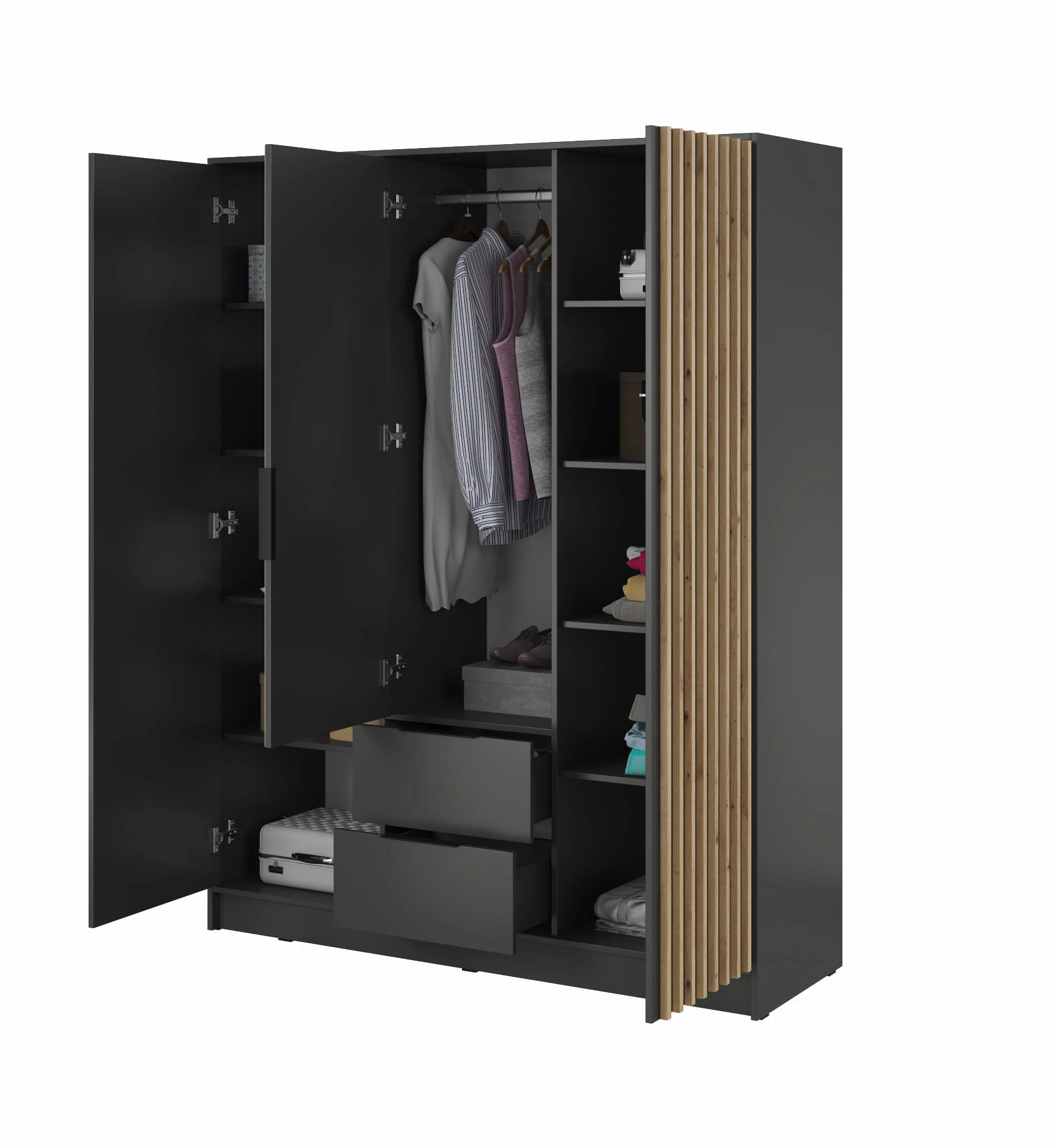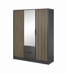 Szafa trzydrzwiowa MALWA 155 cm z lustrem i szufladami - Grafit / lamele Dąb Artisan