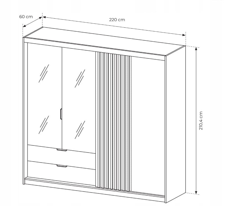 Przedstawiamy Wam naszą czterodrzwiową szafę ubraniową ADELL - perfekcyjnie skomponowane połączenie nowoczesnego designu z funkcjonalnością na najwyższym poziomie. To mebel, który nie tylko zachwyca swym wyglądem, ale także pomieści wiele cennych rzeczy. Szafa jest duża i pojemna. Posiada lustrzane fronty, dwie szuflady oraz półki i drążek na wieszaki. Szafa ADELL to nie tylko mebel do przechowywania, to również wyraz Twojego gustu i stylu.