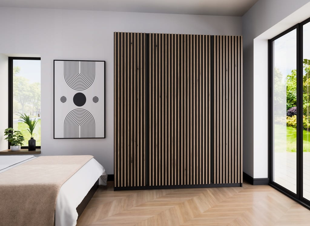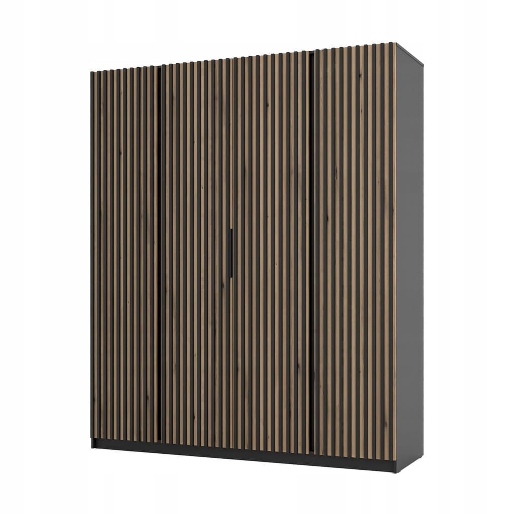Szafa uchylna Czterodrzwiowa IGA 200 cm kolor czarny / dąb evoke + lamele
