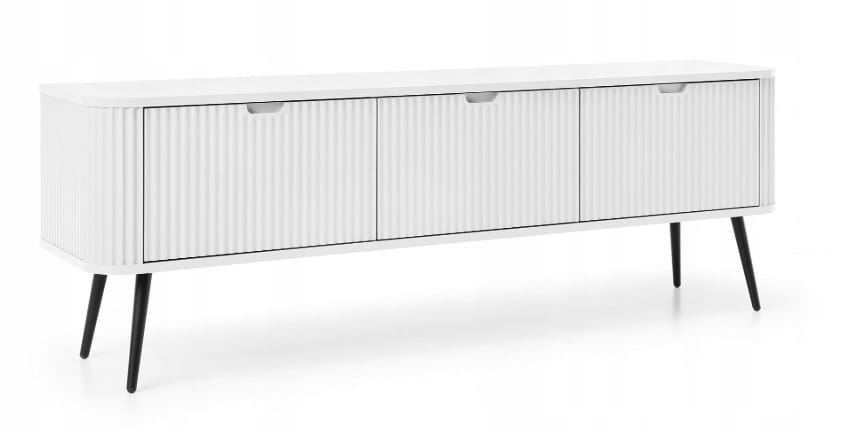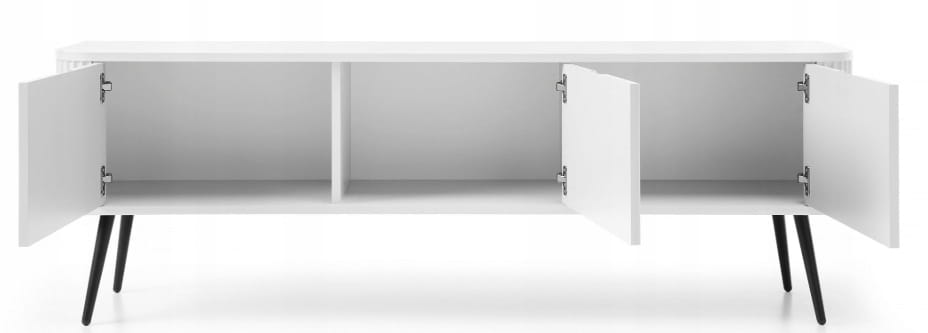 Szafka 3D RTV FROZEN 168 x 56 x 39 cm frezowany front BIAŁY / CZARNE NOGI