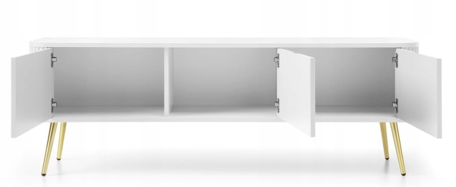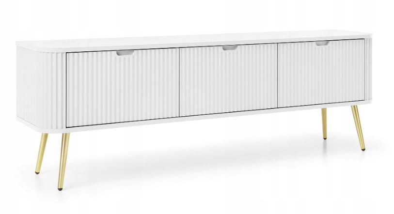Szafka 3D RTV FROZEN 168 x 56 x 39 cm frezowany front BIAŁY / ZŁOTE NOGI