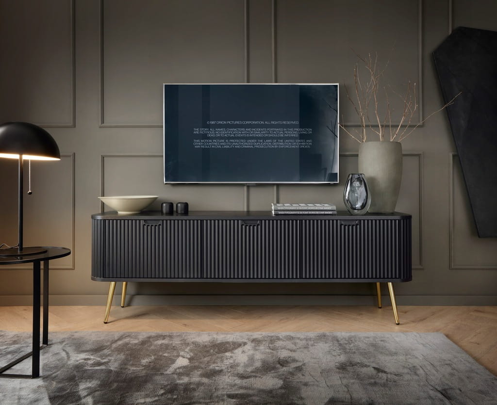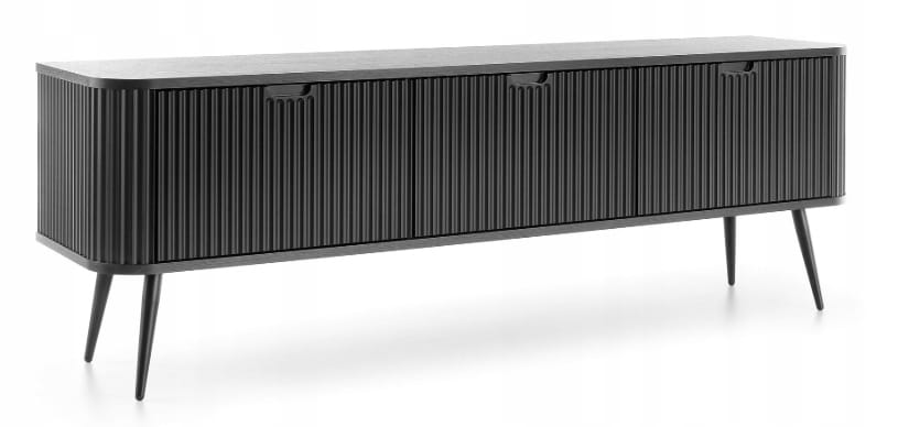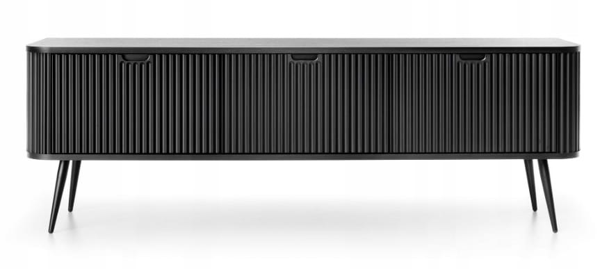 Szafka 3D RTV FROZEN 168 x 56 x 39 cm frezowany front CZARNY / CZARNE NOGI