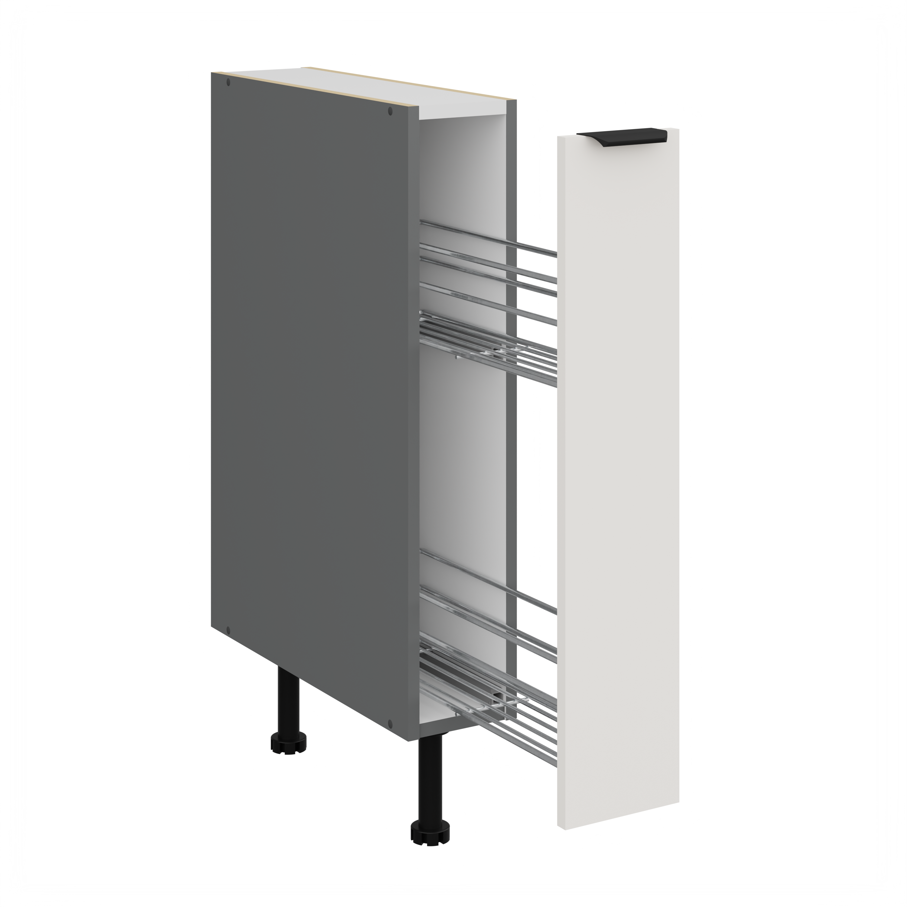 Szafka dolna 15 cm CALIA 15 D CARGO BB wysuwana z koszem CRYSTAL WHITE / ANTRACYT z powłoką ANTI FINGERPRINT