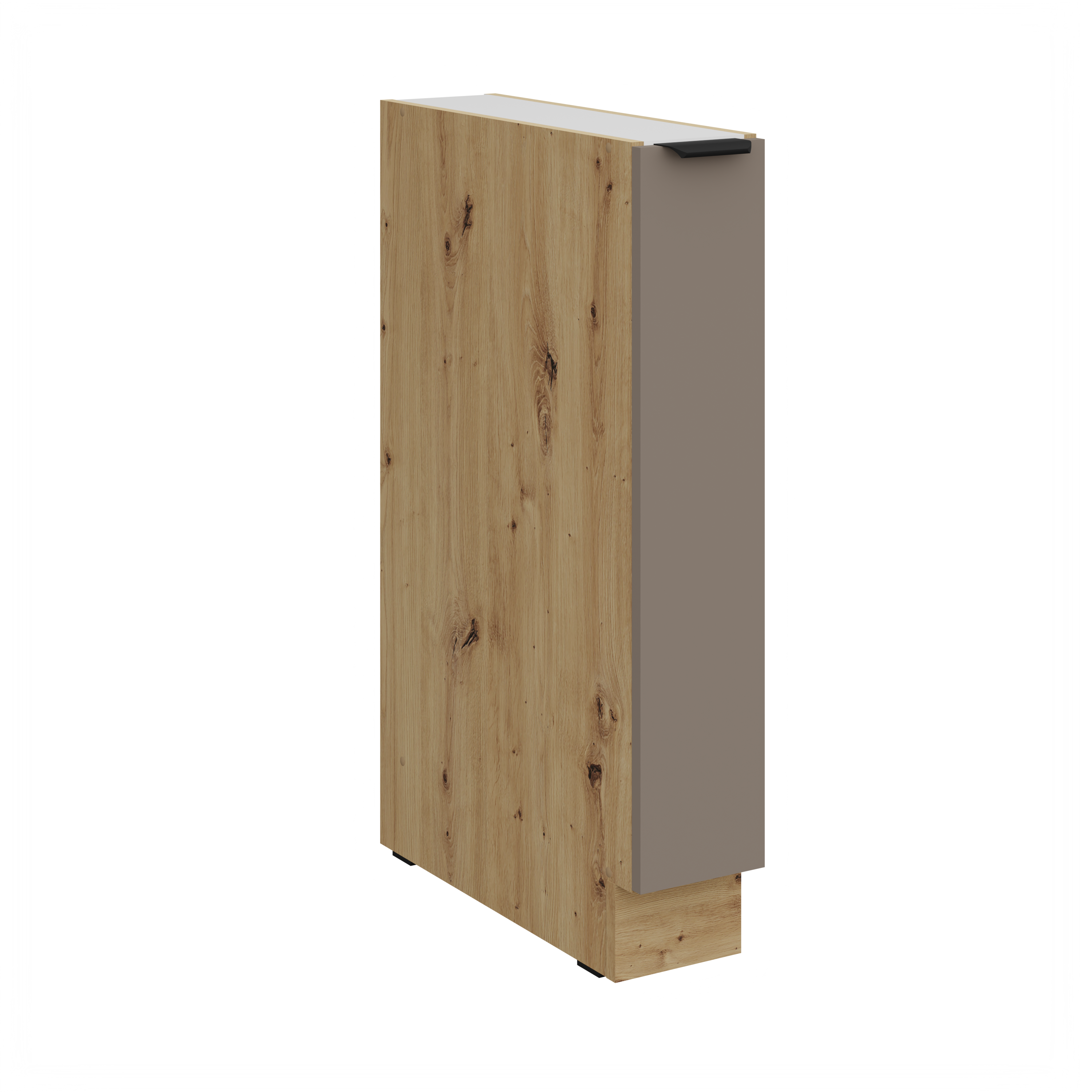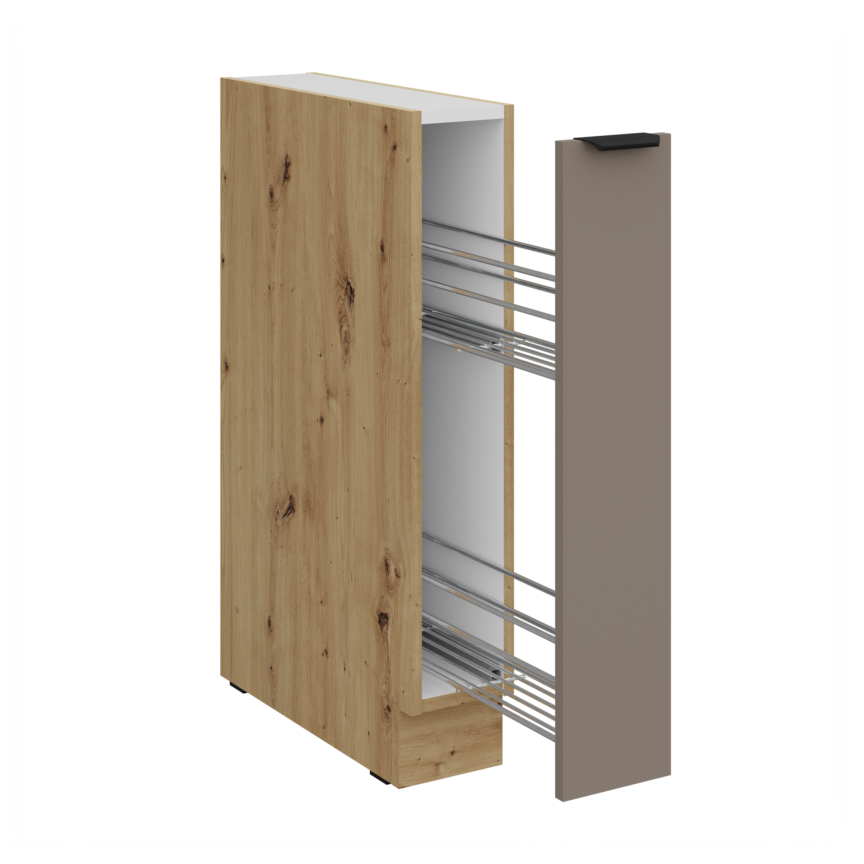 Szafka dolna 15 cm CALIA 15 D CARGO BB wysuwana z koszem SANDGRAU / DĄB ARTISAN z powłoką ANTI FINGERPRINT