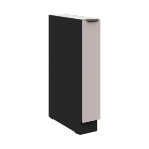 Szafka dolna 15 D CARGO BB z kolekcji KASZMIR - To najmniejsza, ale zaskakująco użyteczna szafka dolna z wysuwanym koszem, stworzona z myślą o maksymalnym wykorzystaniu dostępnej przestrzeni. Jej kaszmirowy front świetnie współgra z czarnym korpusem, tworząc stylowy i spójny element aranżacji. Wysuwany kosz sprawdzi się idealnie na przyprawy, oleje lub detergenty. Świetna opcja jako wypełnienie wolnej szczeliny między większymi modułami.