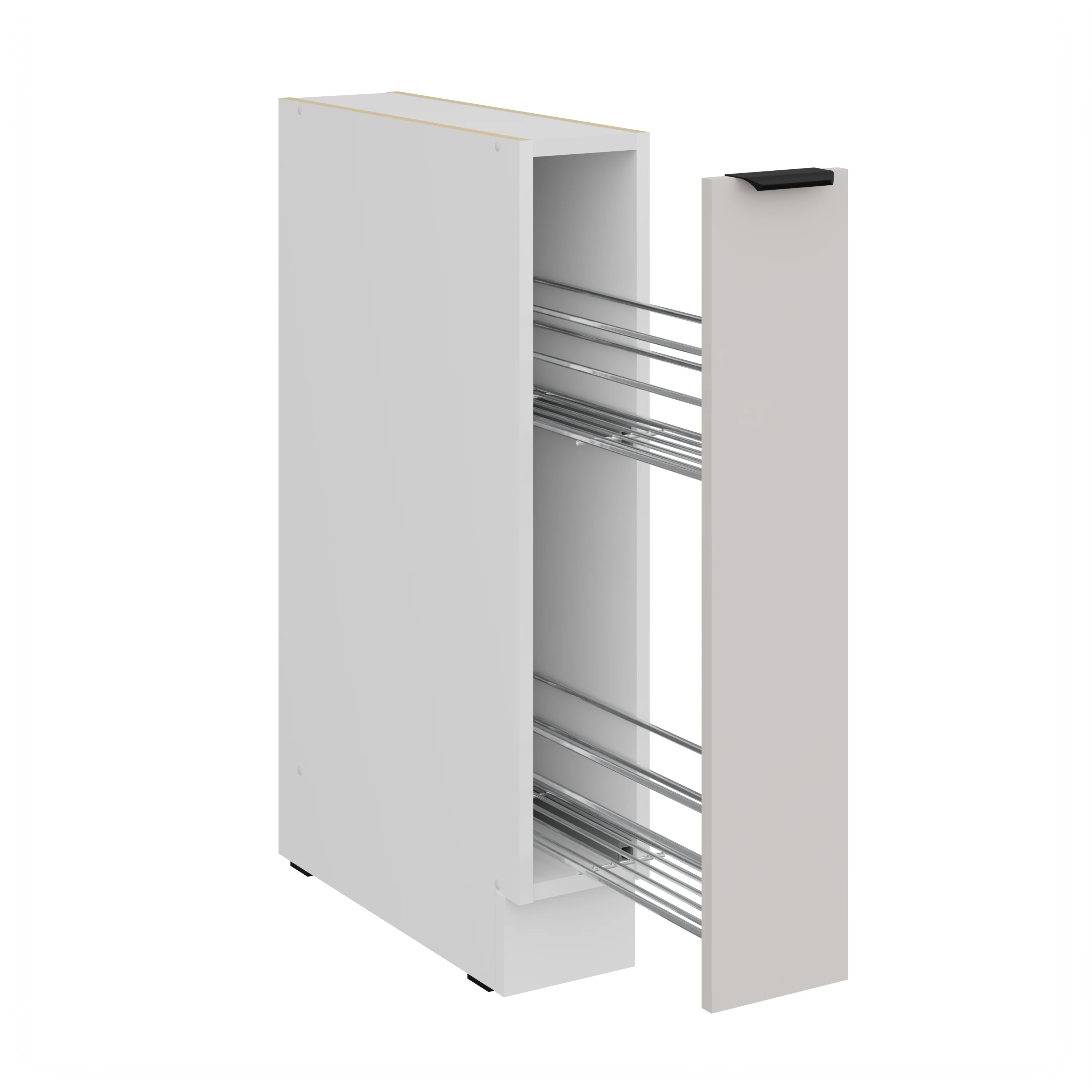 Szafka dolna 15 D CARGO BB z kolekcji KASZMIR to bardzo wąska szafka wysuwana, idealna jako uzupełnienie zabudowy. Mimo niewielkich rozmiarów, jej wygląd ma znaczenie – kaszmirowy front to obecnie jeden z najbardziej pożądanych akcentów kolorystycznych w nowoczesnej kuchni.