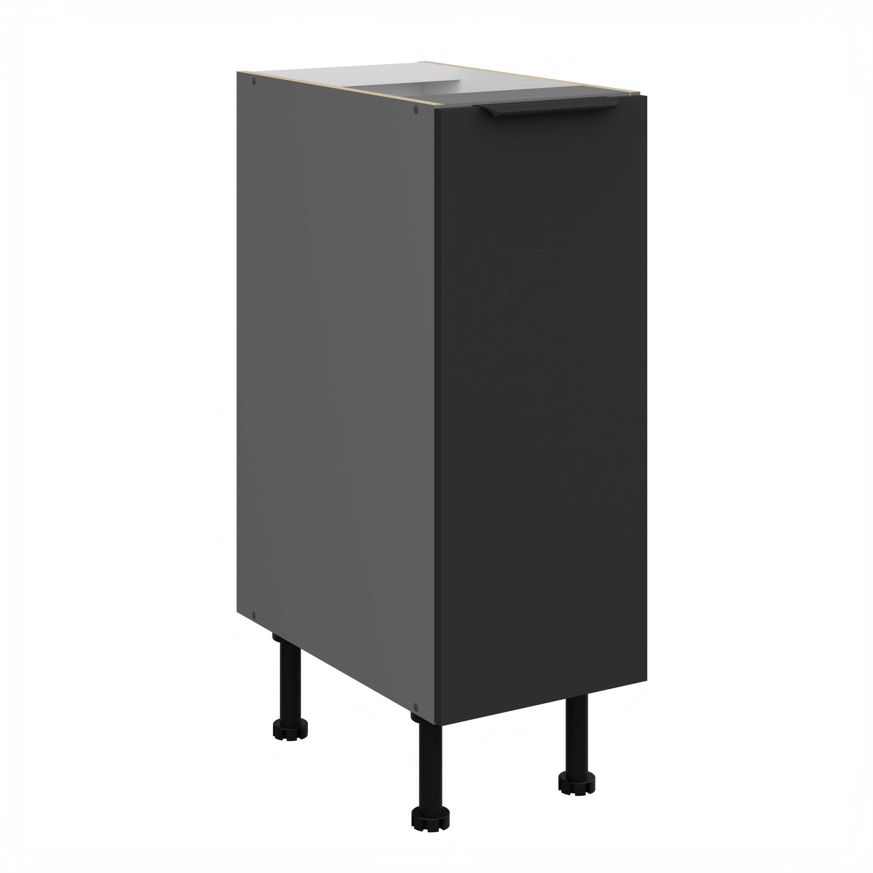 UWAGA! Szafki dolne z kolekcji kuchennej CALIA wykonane na korpusie w kolorze Antracyt - NIE posiadają w zestawie cokołów dociętych pod wymiar szafki! Szafki stoją na czarnych regulowanych nóżkach.