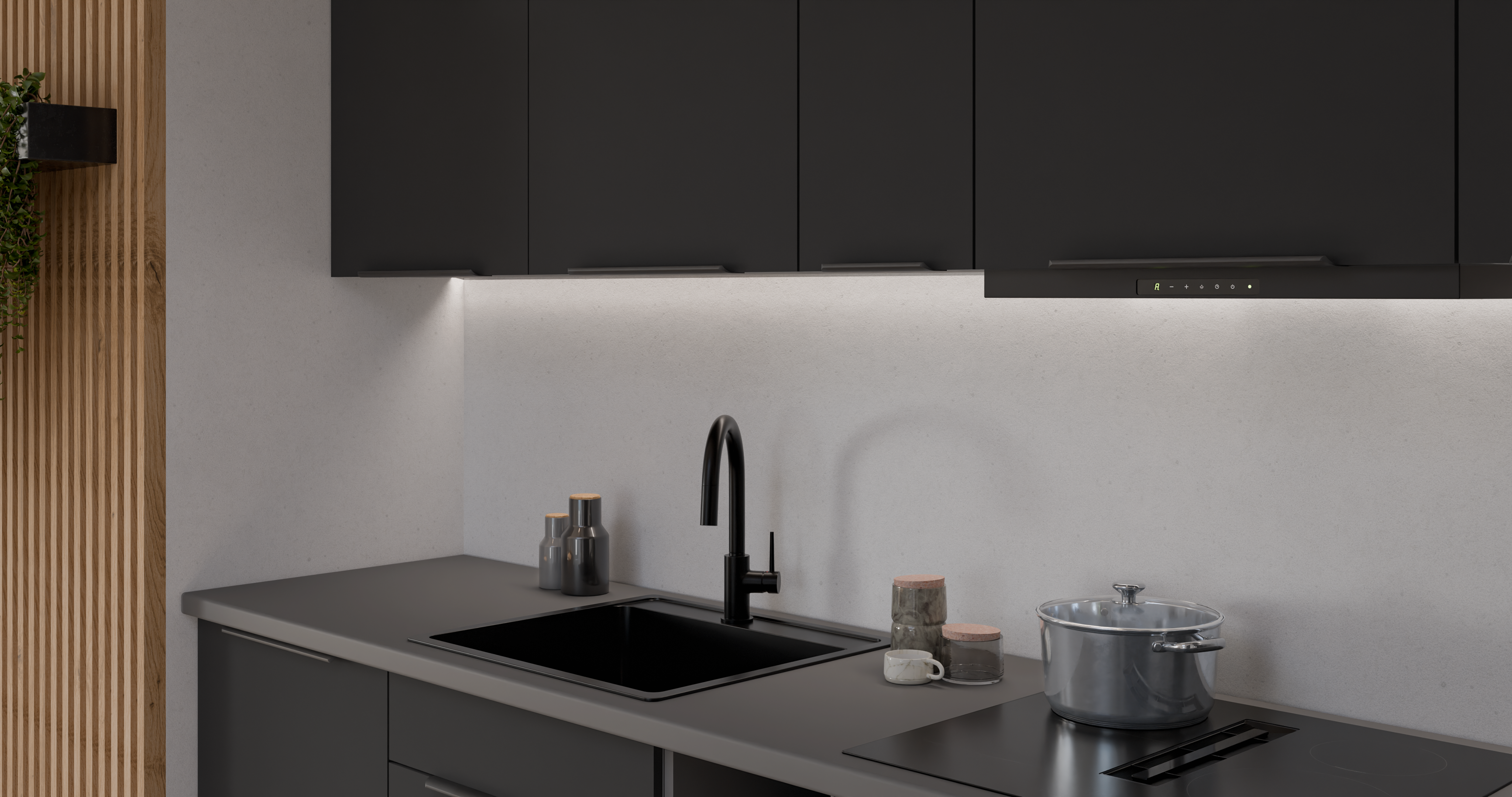 Fronty dostępne są w pięciu kolorach: crystal white, aquamarine, sandgrau, grafit i czarny, natomiast korpusy w czterech wariantach: biały, dąb artisan, czarny oraz antracyt. Tak szeroka gama pozwala tworzyć harmonijne lub kontrastowe zestawienia dopasowane do każdego wnętrza.