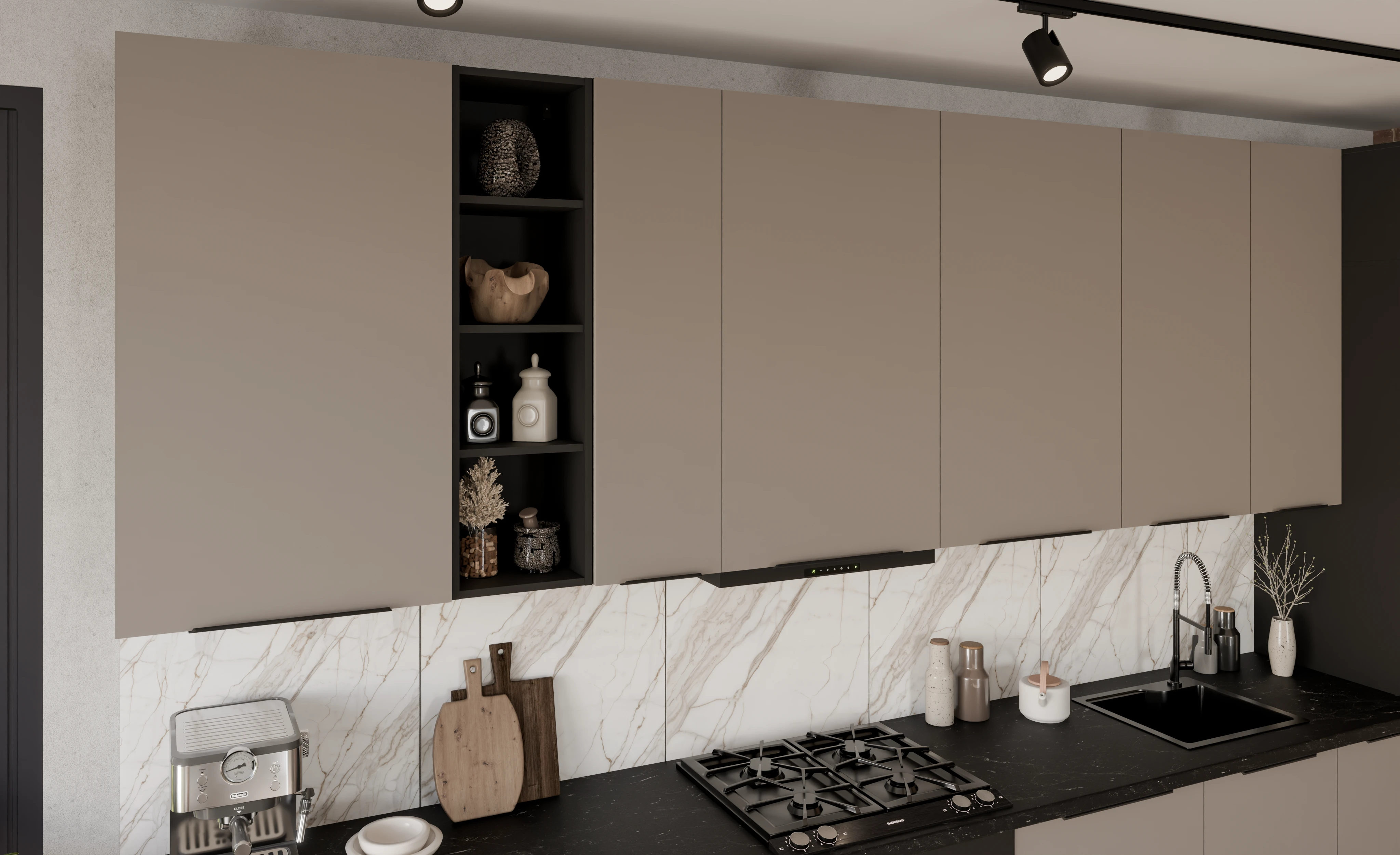 CALIA to nowoczesna kolekcja mebli kuchennych, łącząca styl, funkcjonalność i najwyższą jakość wykonania. Jej największym wyróżnikiem są fronty pokryte innowacyjną powłoką ANTI-FINGERPRINT, która skutecznie ogranicza powstawanie śladów palców. Dzięki niej powierzchnie mebli pozostają czyste i estetyczne na dłużej, a matowe wykończenie frontów nadaje im elegancki, nowoczesny charakter.