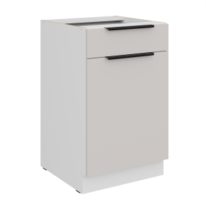 Szafka dolna 50 D 1F 1S BB z kolekcji KASZMIR łączy w sobie praktyczność i estetykę. Szuflada oraz front uchylny pozwalają na ergonomiczne przechowywanie akcesoriów kuchennych. Kaszmir jako kolor dominujący w tej kolekcji zdobywa serca klientów dzięki swojej uniwersalności i eleganckiemu wykończeniu.