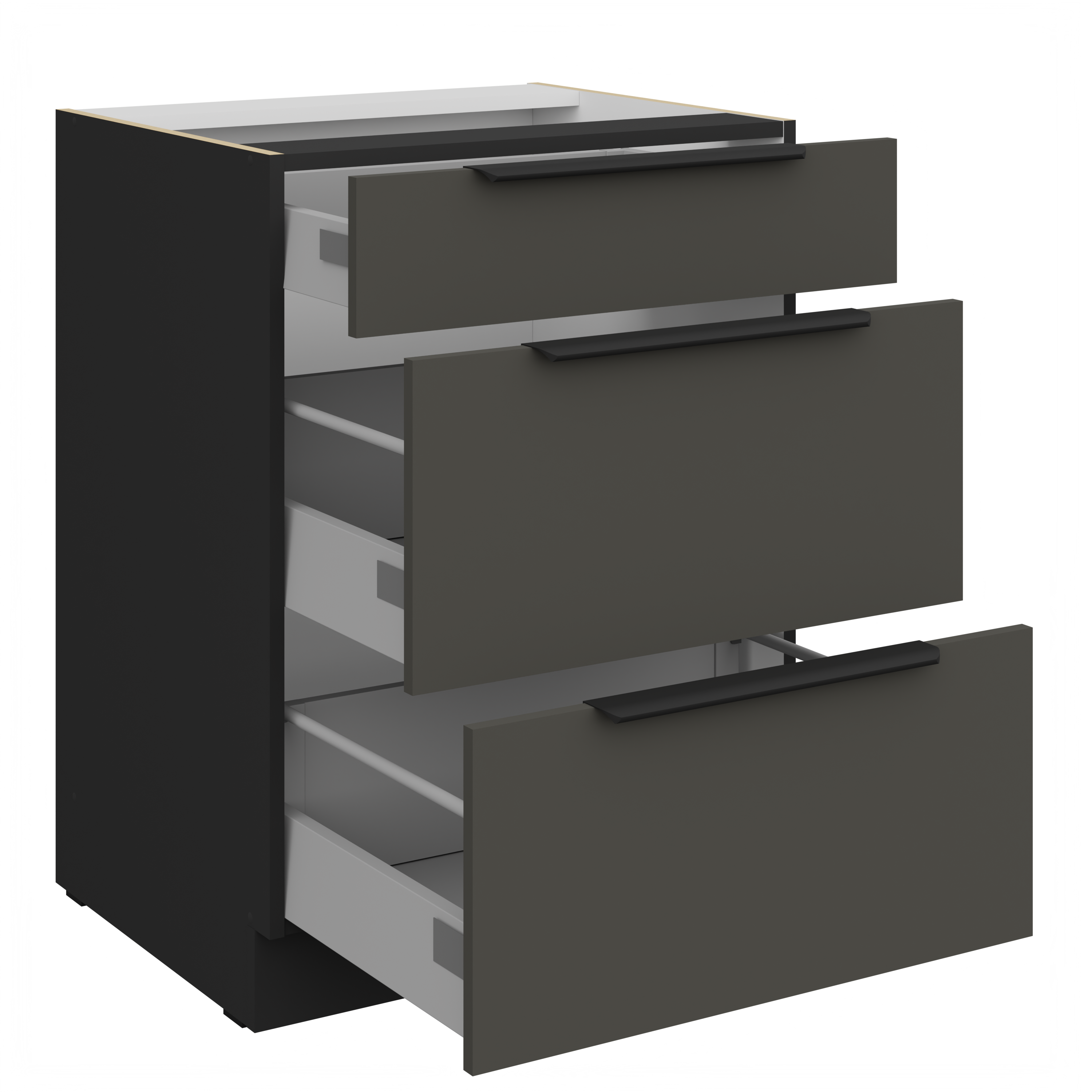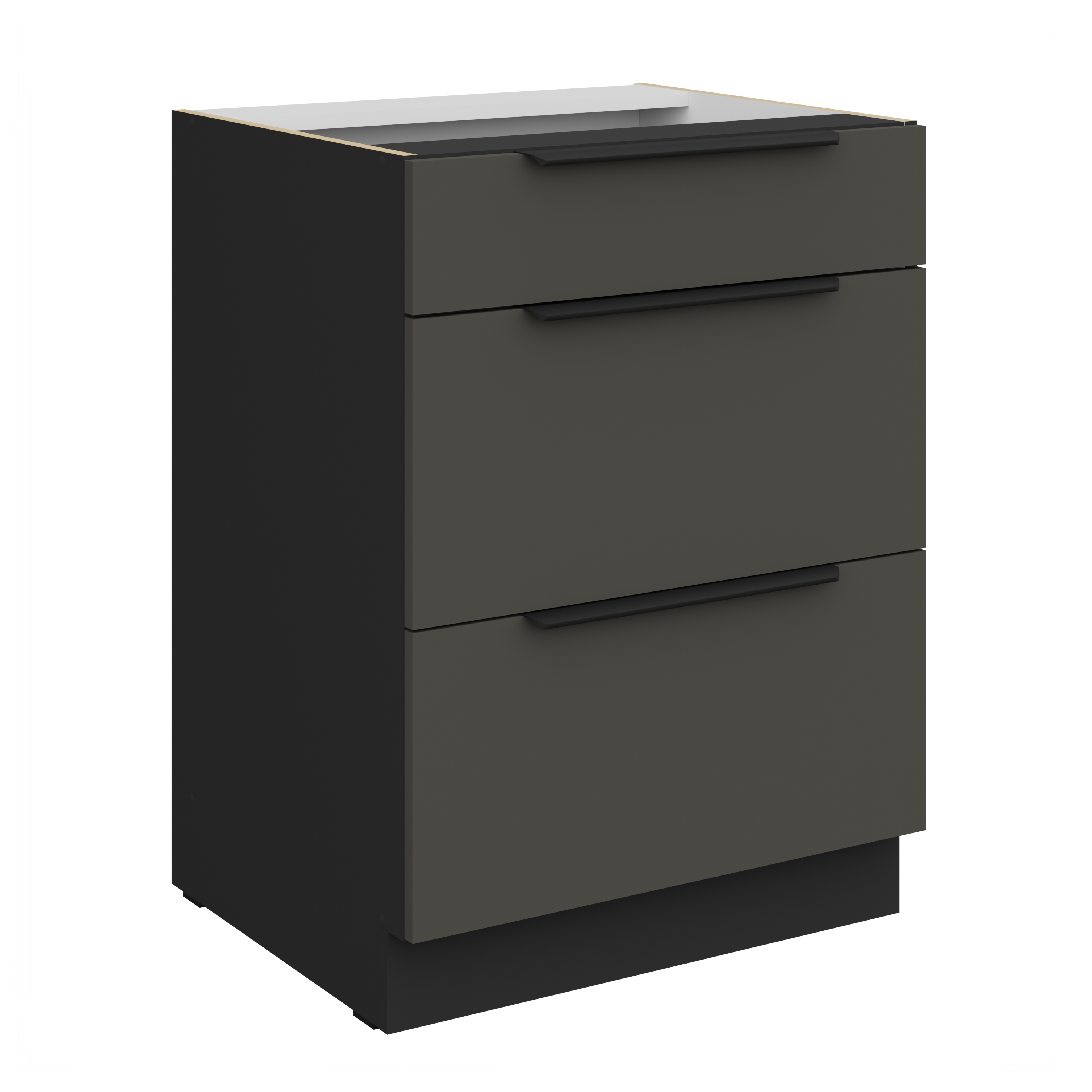 Szafka dolna CALIA 60 D 3S PREMIUM BOX - GRAFIT MAT / CZARNY z powłoką ANTI FINGERPRINT