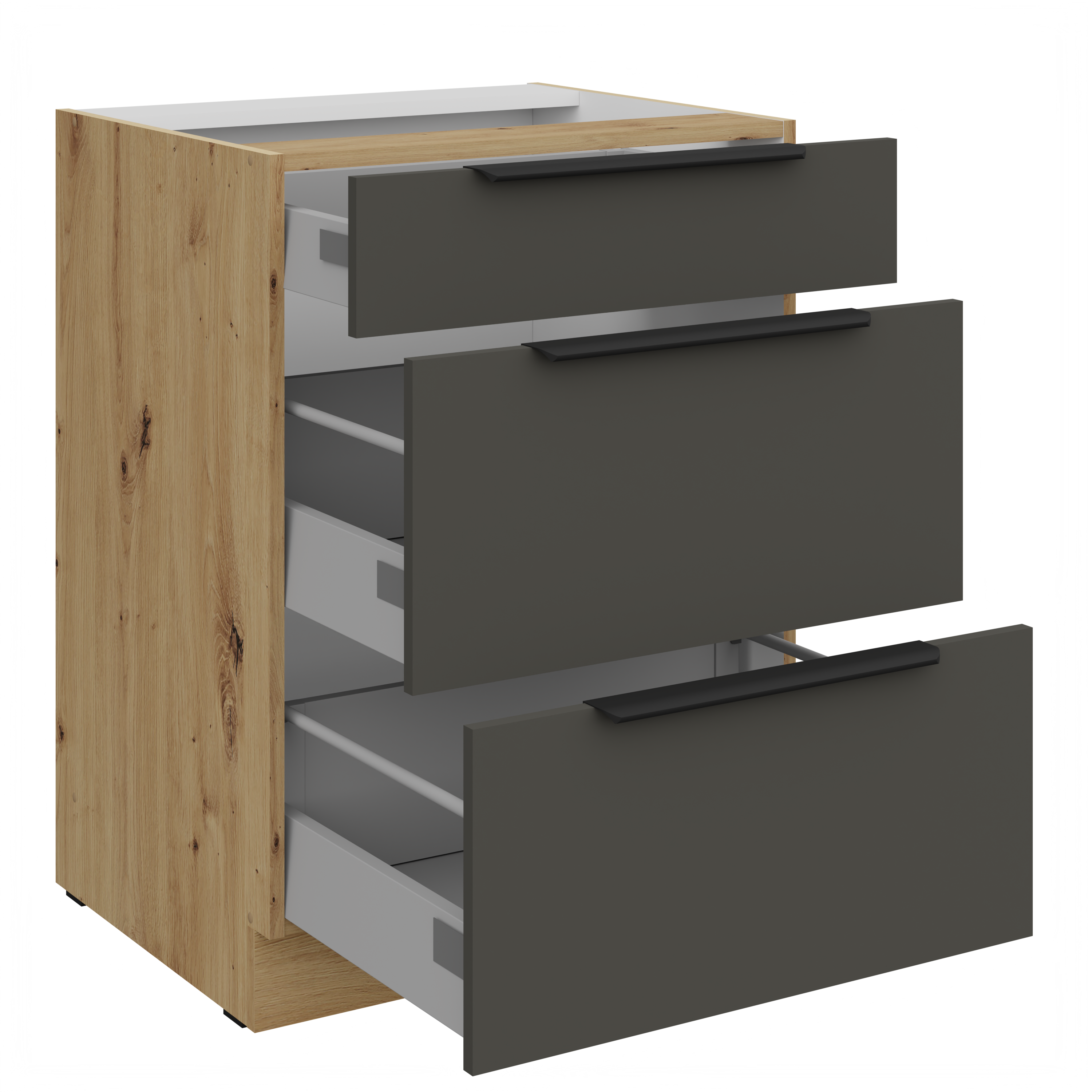 Szafka dolna CALIA 60 D 3S PREMIUM BOX - GRAFIT MAT / DĄB ARTISAN z powłoką ANTI FINGERPRINT