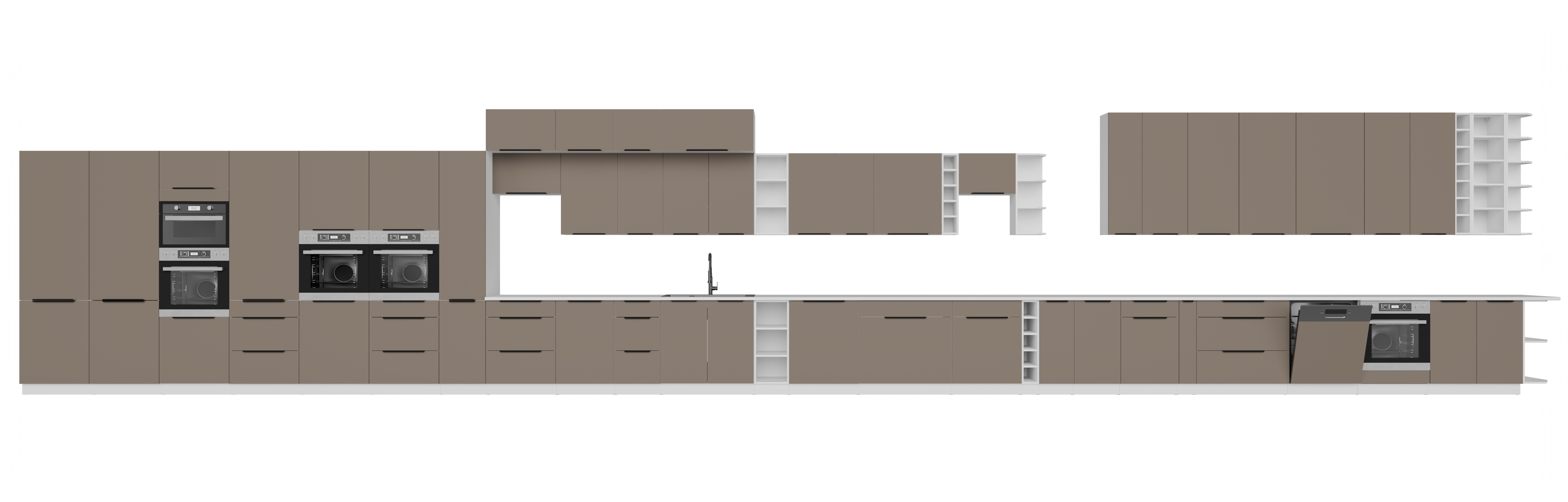 Fronty dostępne są w pięciu kolorach: crystal white, aquamarine, sandgrau, grafit i czarny, natomiast korpusy w czterech wariantach: biały, dąb artisan, czarny oraz antracyt. Tak szeroka gama pozwala tworzyć harmonijne lub kontrastowe zestawienia dopasowane do każdego wnętrza.