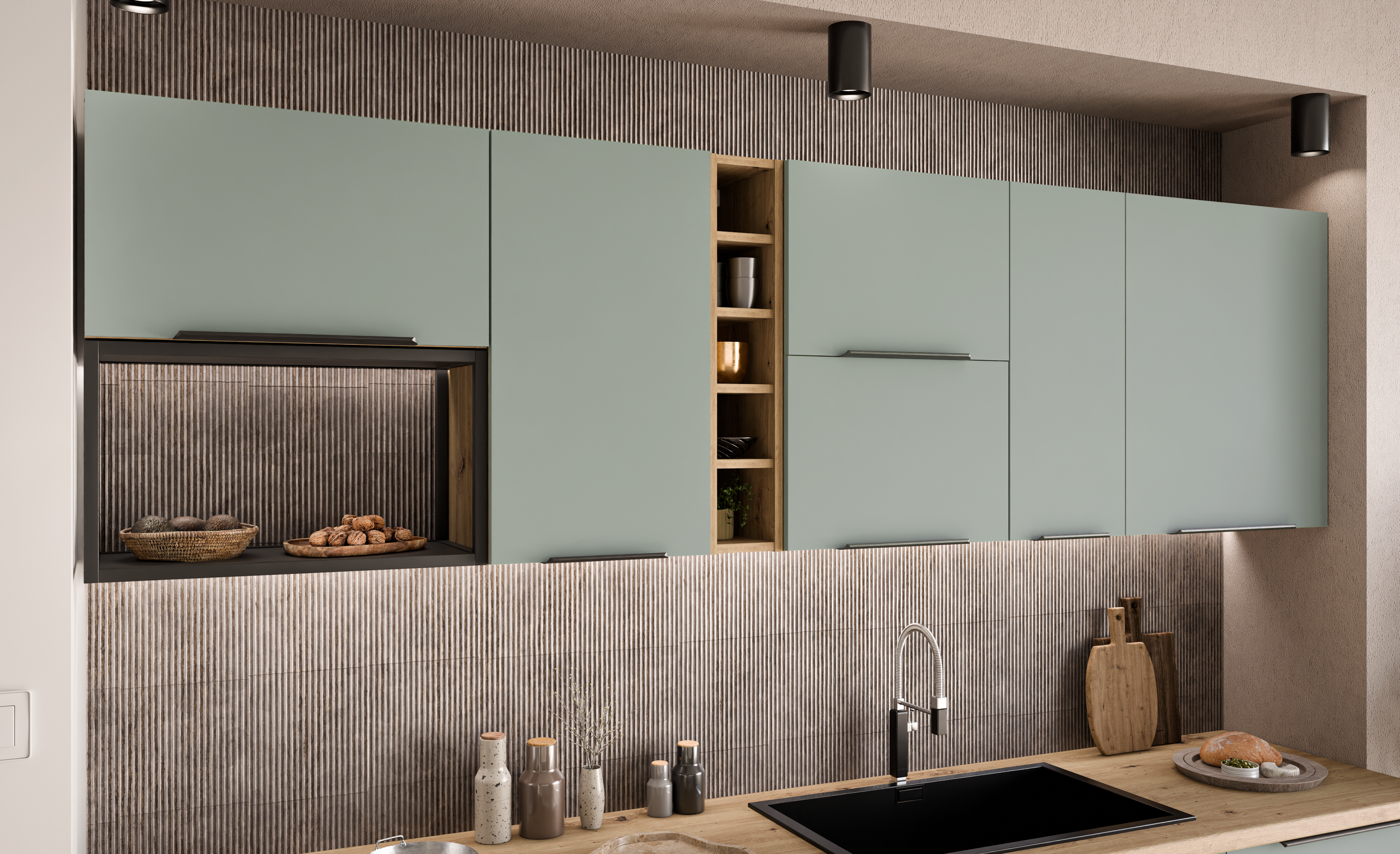 ☑️ Różne wysokości szafek górnych – kolekcja oferuje szafki wiszące w trzech wariantach: 72 cm, 90 cm i 108 cm, co pozwala idealnie dopasować zabudowę do wymiarów i charakteru każdej kuchni.