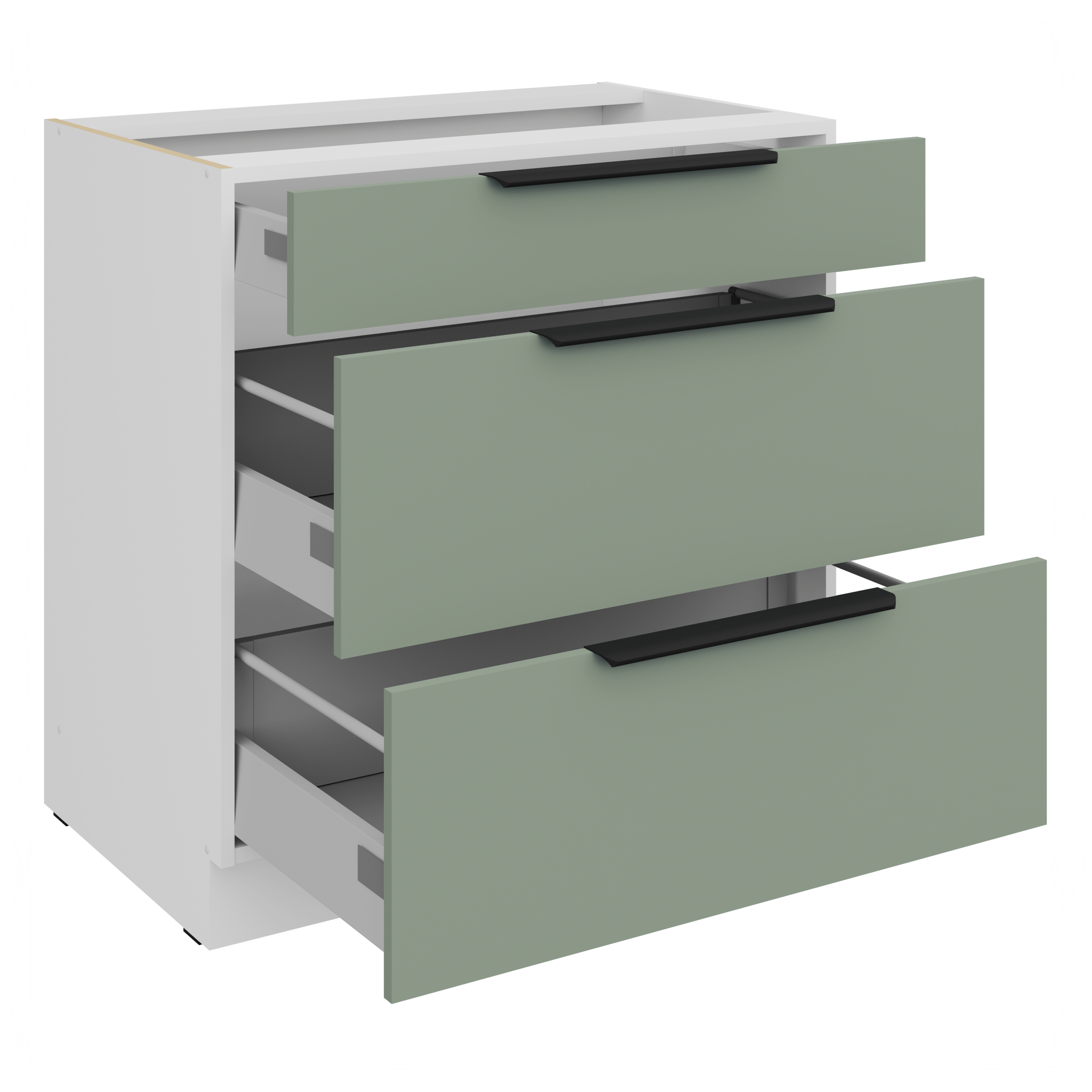 Szafka dolna z szufladami 80 D 3S BB CALIA - Aquamarine / Biały z powłoką ANTI FINGERPRINT