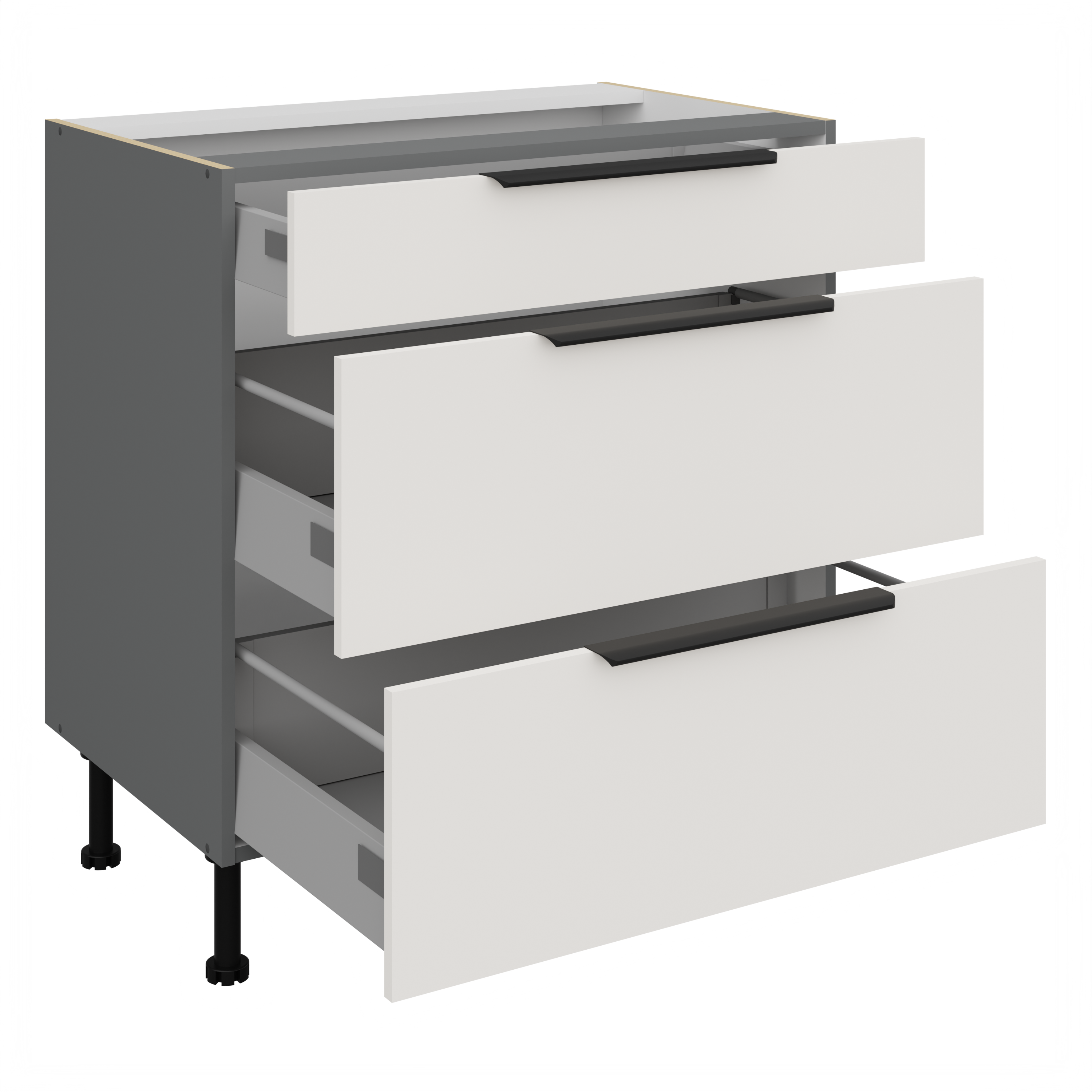 Szafka dolna z szufladami 80 D 3S BB CALIA - Crystal White ( Biały mat ) / Antracyt z powłoką ANTI FINGERPRINT
