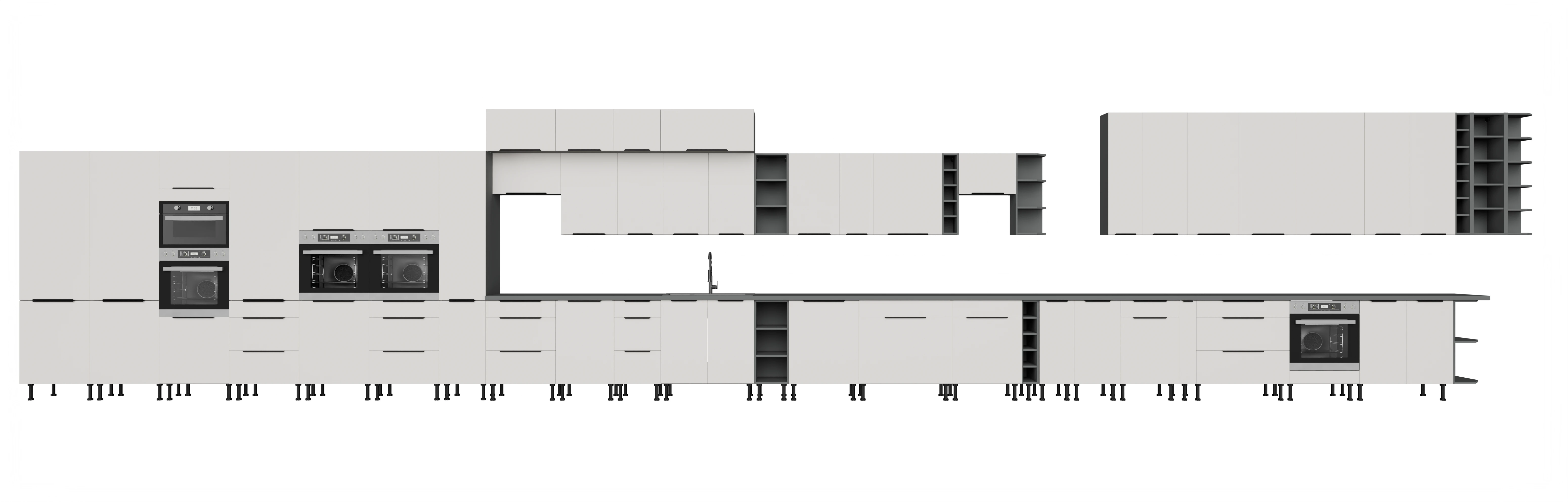 Fronty dostępne są w pięciu kolorach: crystal white, aquamarine, sandgrau, grafit i czarny, natomiast korpusy w czterech wariantach: biały, dąb artisan, czarny oraz antracyt. Tak szeroka gama pozwala tworzyć harmonijne lub kontrastowe zestawienia dopasowane do każdego wnętrza.