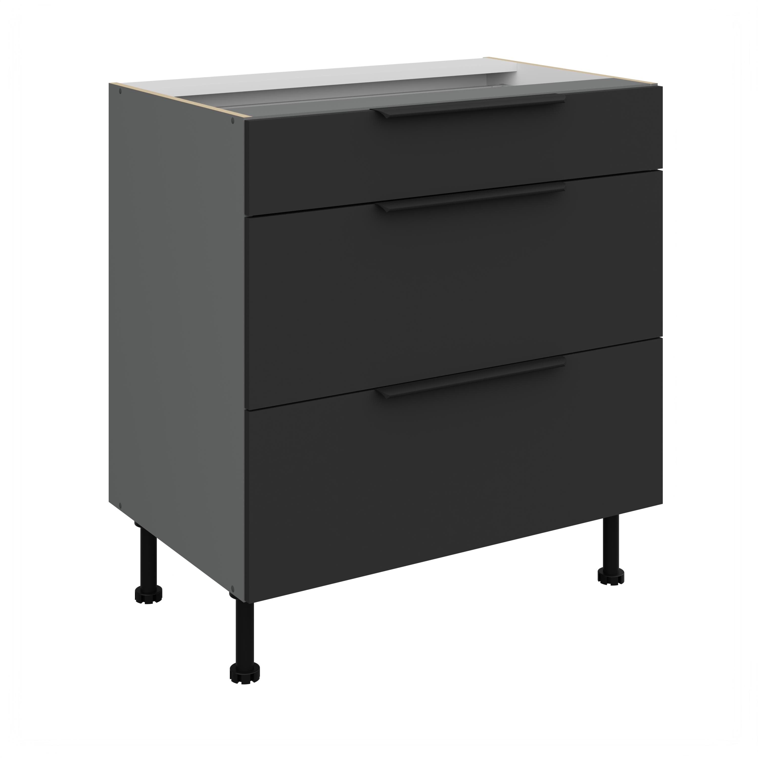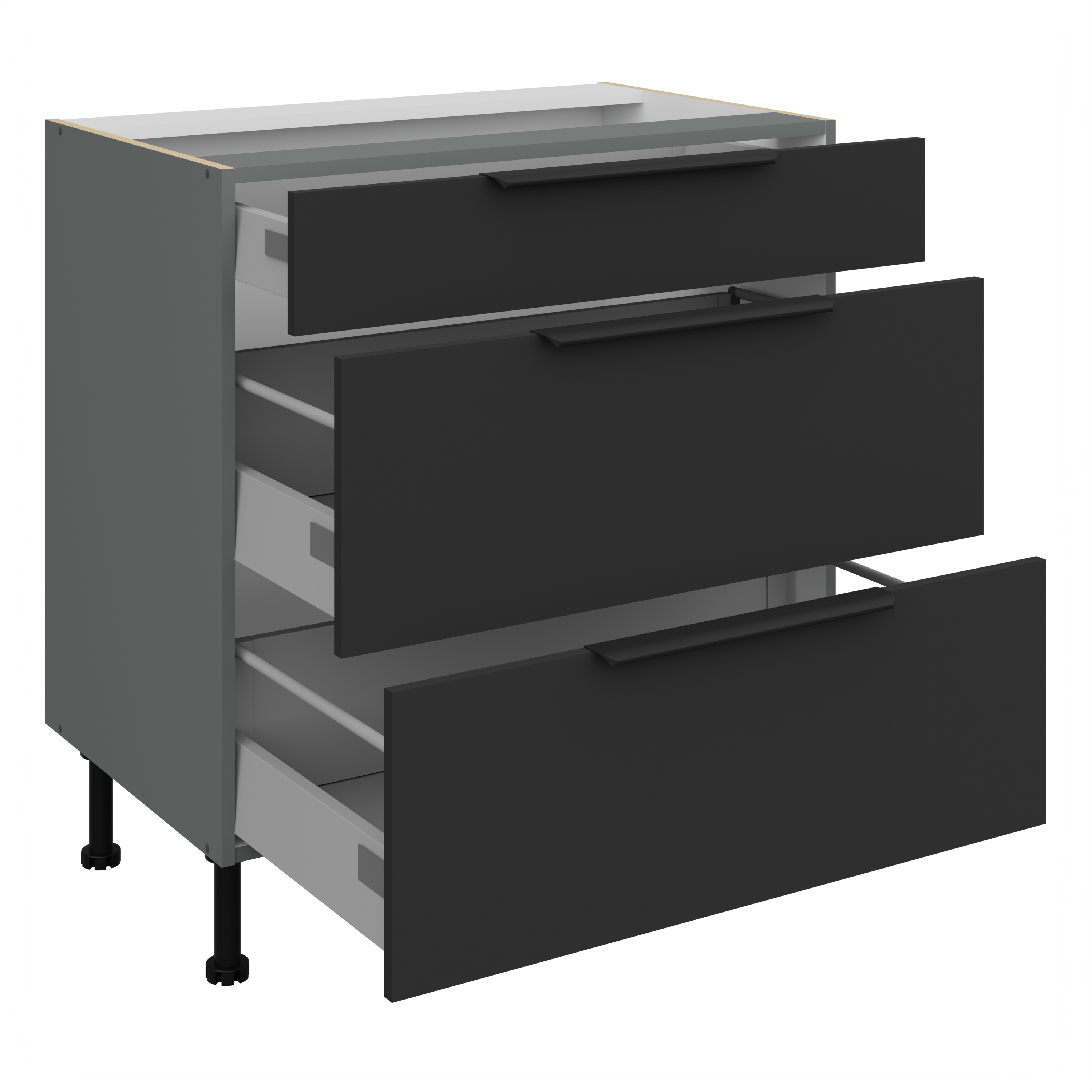 Szafka dolna z szufladami 80 D 3S BB CALIA - Czarny / Antracyt z powłoką ANTI