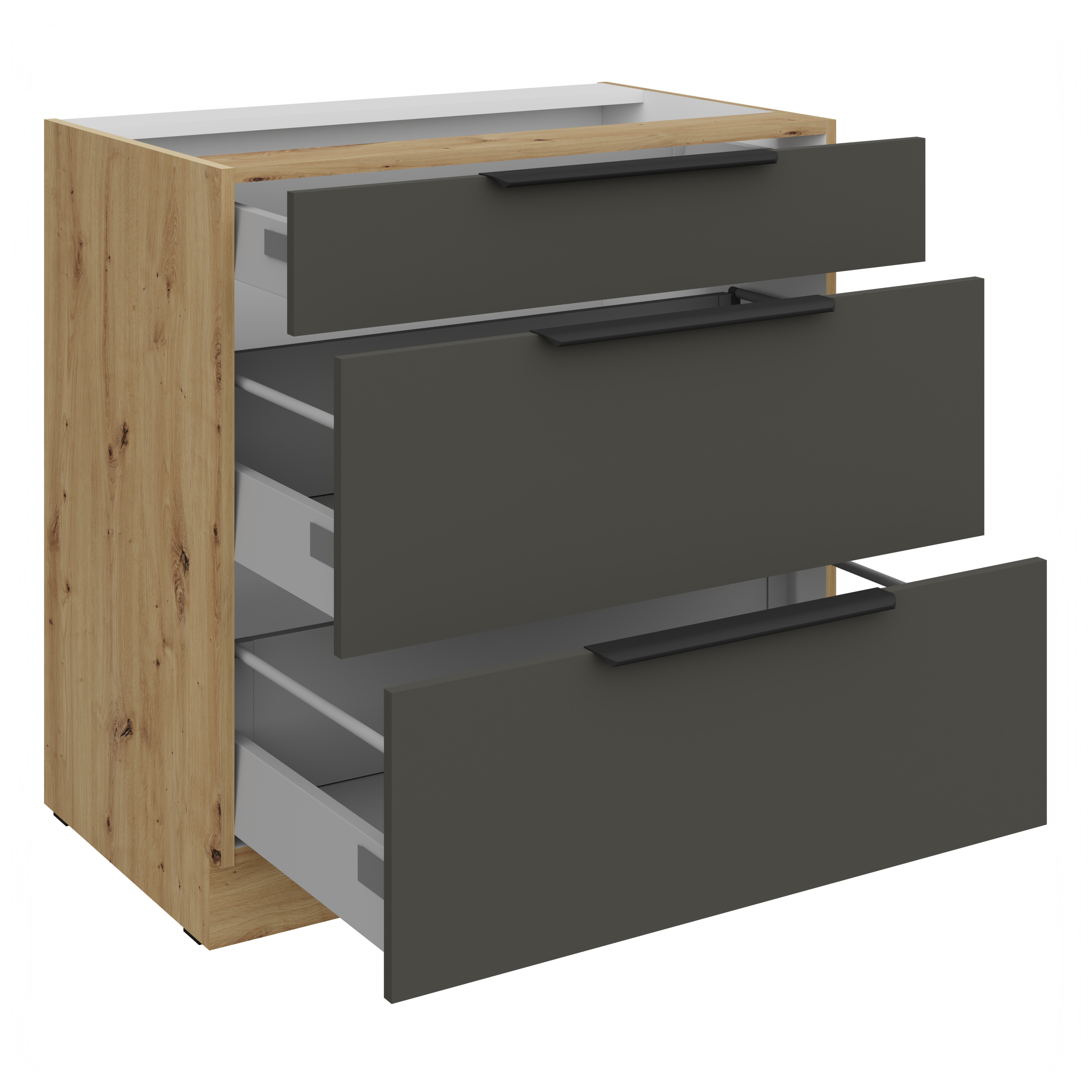 Szafka dolna z szufladami 80 D 3S BB CALIA - Grafit mat / Dąb Artisan z powłoką ANTI FINGERPRINT