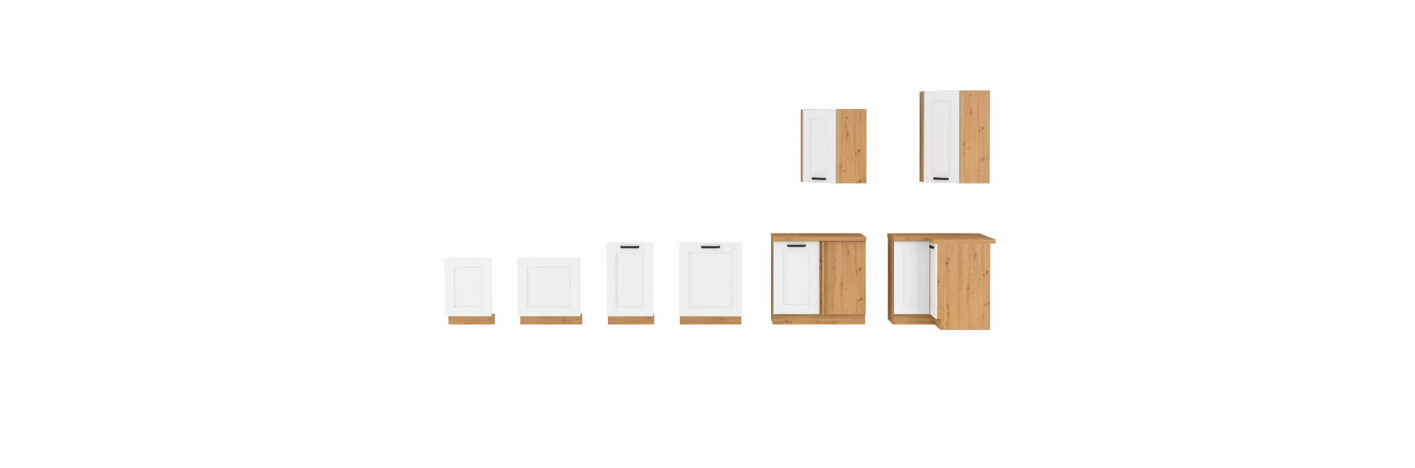 ✅ Elastyczna konfiguracja ponad 50 różnych szafek górnych i dolnych – stwórz zabudowę kuchenną idealnie dopasowaną do Twoich potrzeb.